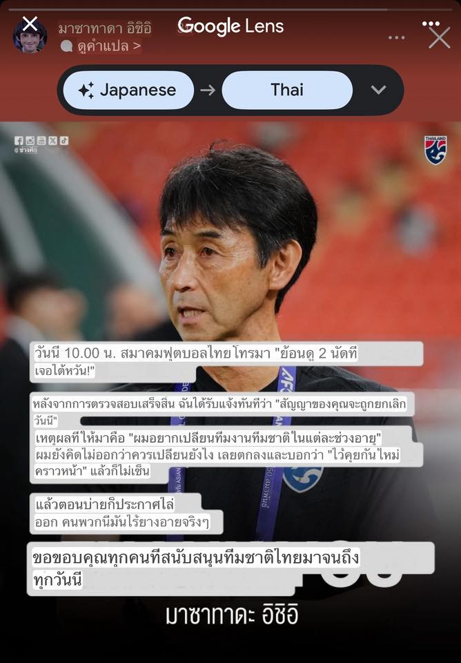 แฟนบอลช็อก อิชิอิโพสไอจี บอกว่าถูกปลด เพราะอะไร