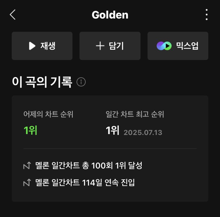 Golden. กลายเป็นซิงเกิ้ลแรกที่อยู่ในอันดับที่ #1 บนชาร์ต MelOn Daily มากถึง 100 วัน