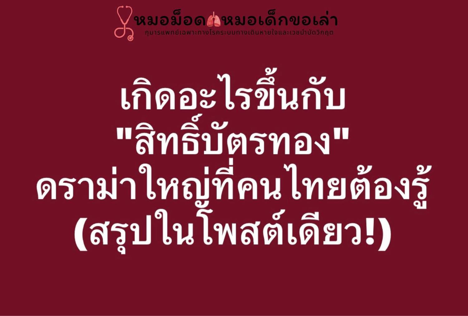 1.บัตรทอง คือสิทธิรักษาฟรีสำหรับคนไทยประมาณ 48 ล้านคน