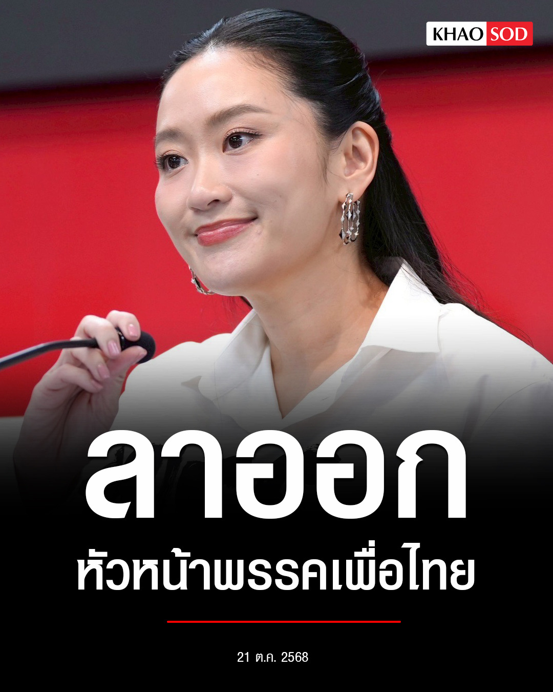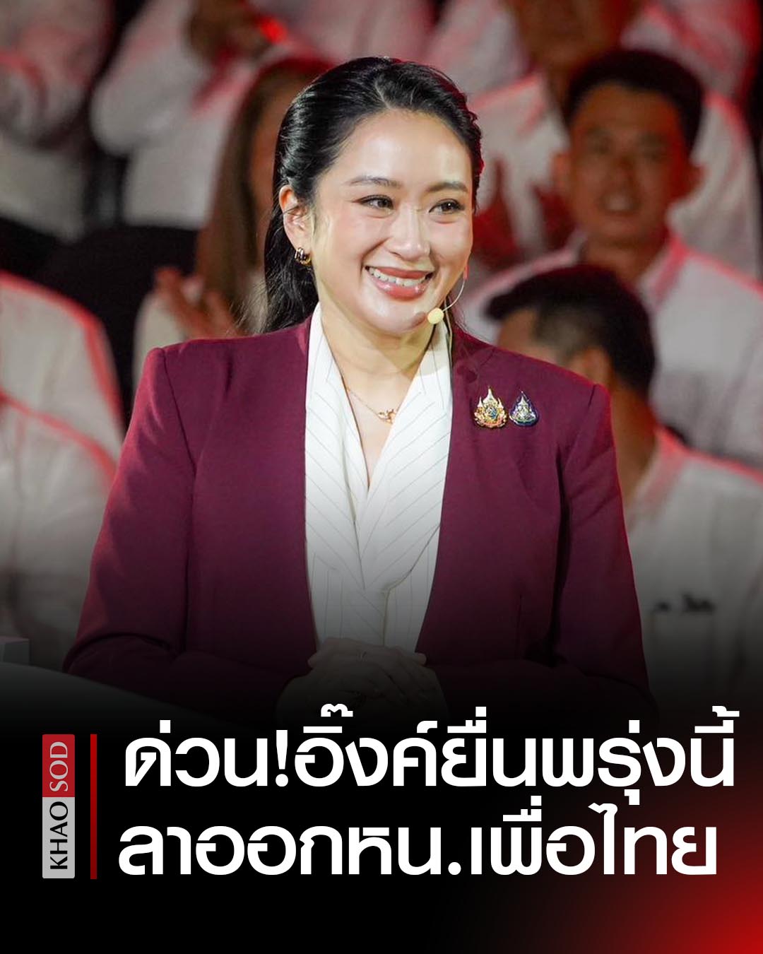 ด่วน! อิ๊งค์ ประกาศลาออก หัวหน้าเพื่อไทย 22 ต.ค.นี้ เตรียมเรียกประชุม สส.-กก.บห. แจ้งให้ทราบ เผยสาเหตุ หวั่นเกิดความเสียหายกับพรรคในอนาคต
