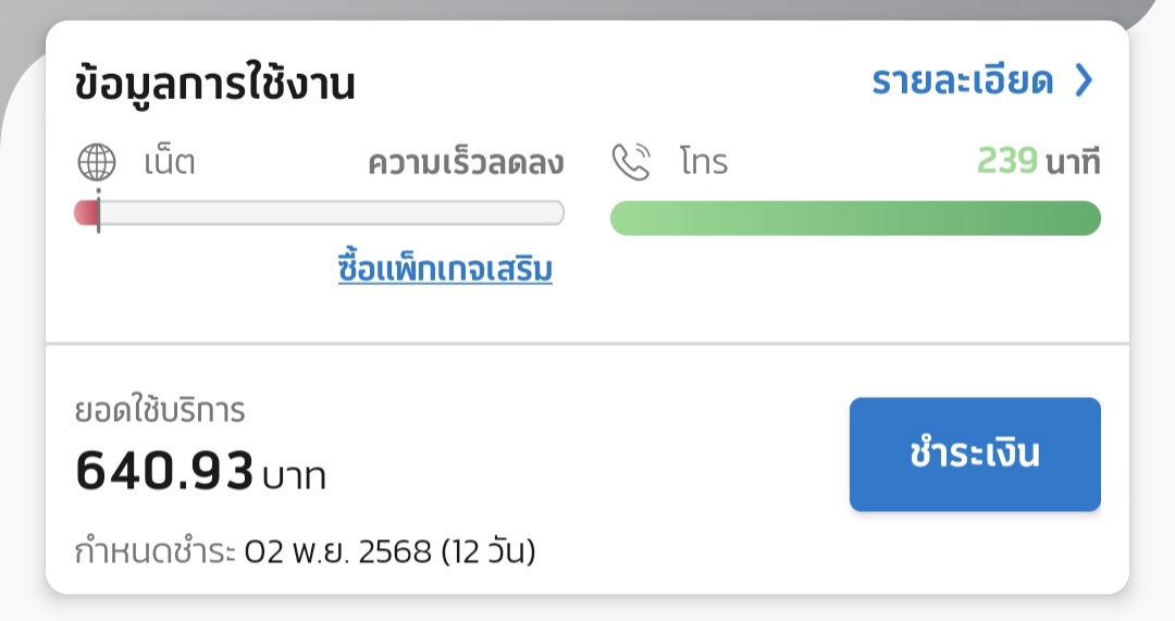 ขึ้น 500-600-700-800-900-สุดคือเหยียดพัน คือที่ต้องจ่ายเพิ่มขึ้นเรื่อยๆ ทั้งที่พฤติกรรมใช้เน็ตก็ทำอะไรเดิมๆ ไม่ค่อยโหลดไฟล์ใหญ่หรือทำอะไร งงมาก แพงขึ้นยอมจ่ายนะ ขี้เกียจปวดหัวปัญหามาก เออขึ้นก็ขึ้นวะ จ่ายได้จะใช้เน็ต แต่ทุกเดือนยกเว้นแรกๆคือเน็ตกากกัง โหลดไฟล์งานไฟล์เรียนนิดๆหน่อยๆไม่ได้ อืด ค้างอยู่อย่างนั้น ไฟล์ 3.3 MB โหลดอยู่ 10 นาที อย่าใช้คำว่าปลายเดือนละเน็ตอ่อนเน็ตหมดนะ หลายครั้งจ่ายต้นเดือนรีเน็ตรีเครื่องใหม่ เพิ่งจ่าย