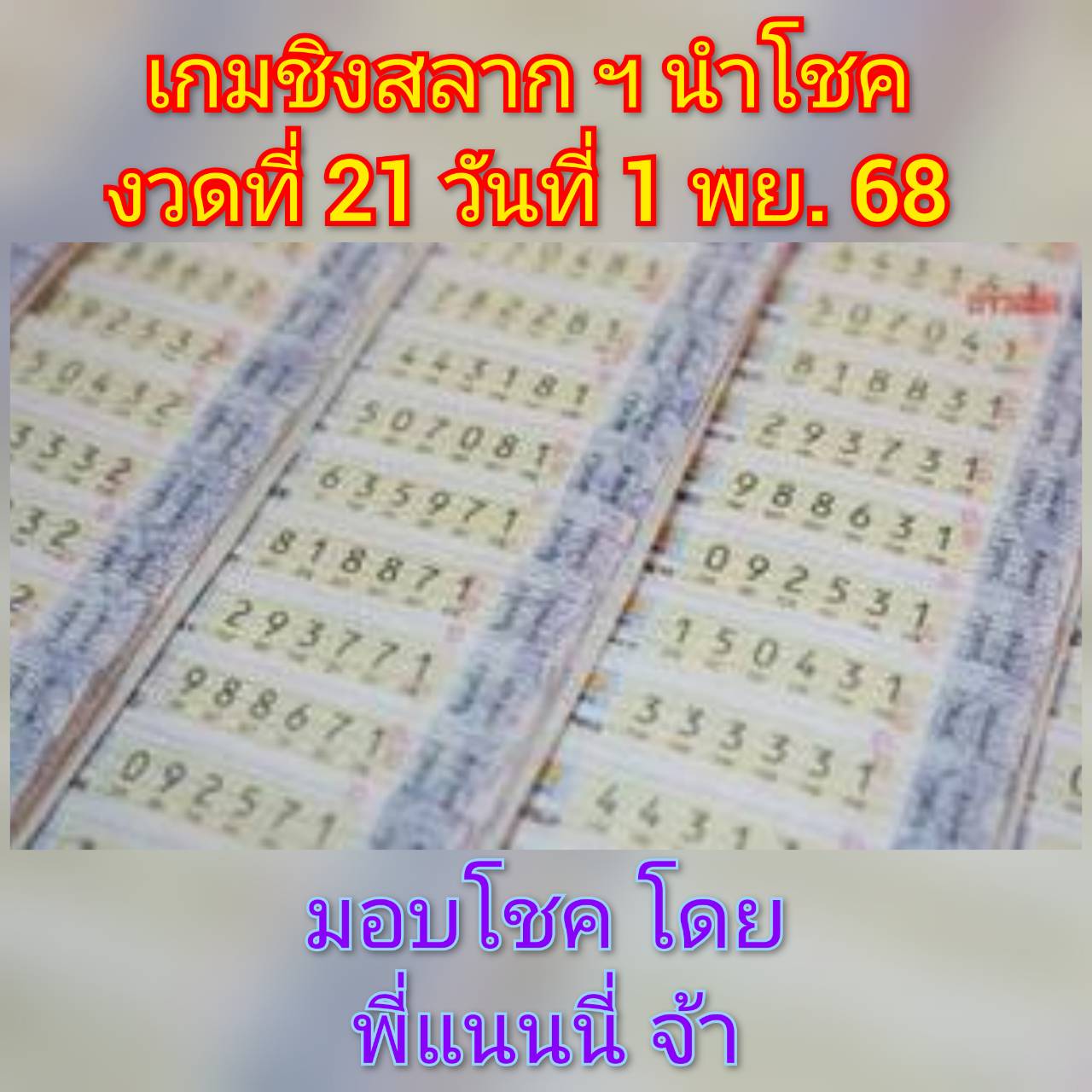 รางวัล :- สลาก ฯ นำโชค งวดที่ 21 วันที่ 1 พฤศจิกายน 2568 จำนวน 3 รางวัล ๆ ละ 3 ใบ