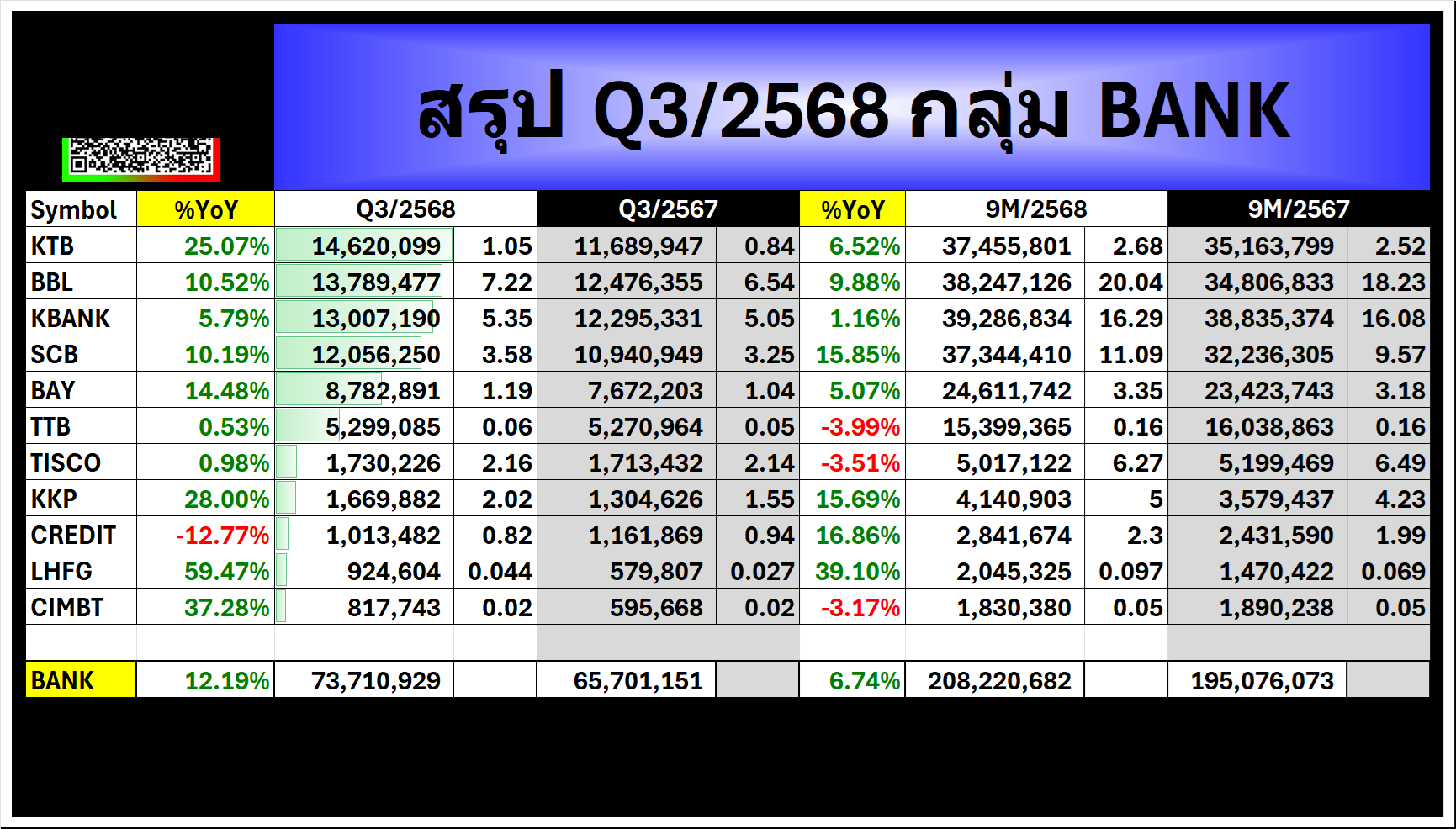 ⭐สรุป Q3/2568 กลุ่ม BANK