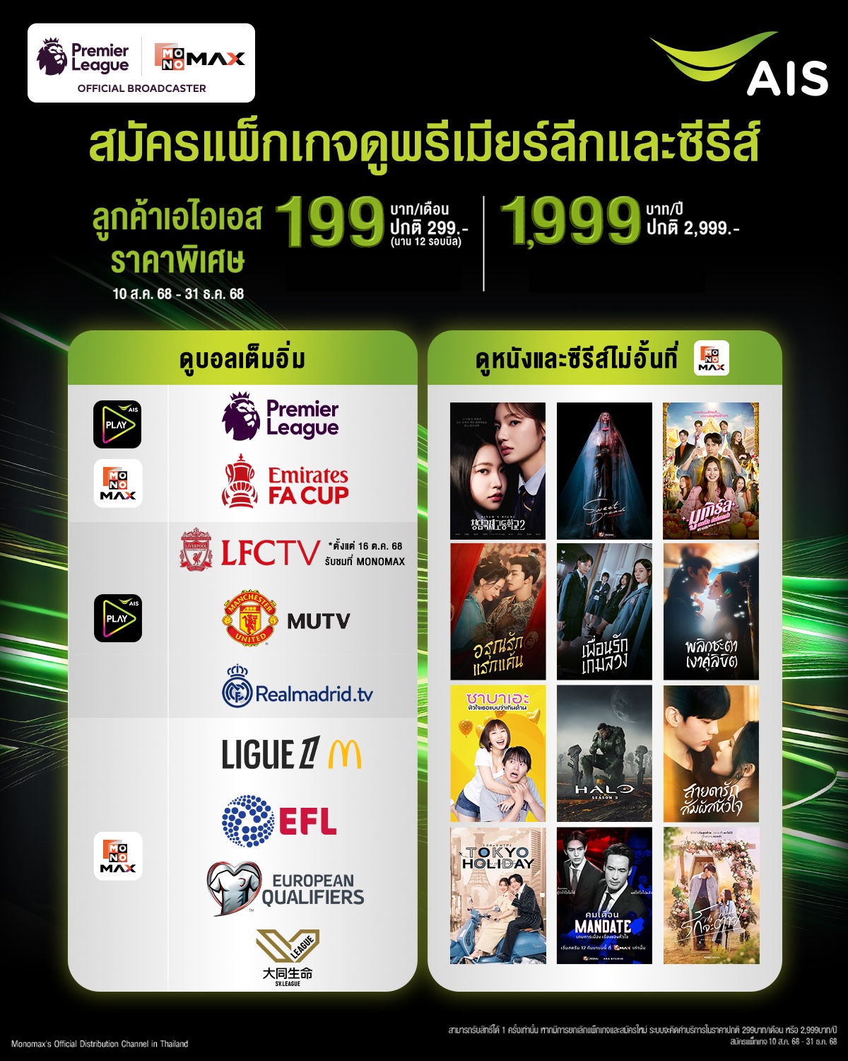 ล่าสุด MONO โชว์ศักยภาพ Monomax แข็งแกร่ง สร้างปรากฏการณ์จากแมตช์ “แดงเดือด” ดันยอดสมาชิกแพ็กเกจ Monomax Standard พุ่งทะลุเกินกว่า 1 ล้านราย สะท้อนการเติบโตของฐานสมาชิกแฟนบอลอย่างต่อเนื่อง พร้อมรุกดันยอดรายได้ไตรมาส 4 ด้วยคอนเทนต์แม่เหล็ก ทั้ง Emirates FA Cup, SV League, Original Series ที่กวาดรางวัลในปีนี้หลายเรื่อง