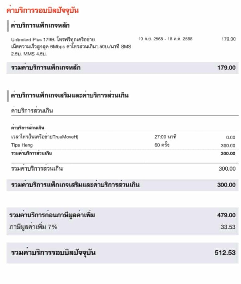 คือที่ผ่านมาเป็นระยะเวลาลา2เดือน ได้มีค่าTips Heng(หรือค่าบริการส่วนเกิน) ของค่ายTrue moveH อยากทราบว่า มันคือค่าอะไรคะ พอดี จขกท.ไม่ได้สมัครอะไรเลย เลยงงค่ะ ว่าค่าบริการส่วนเกินคืออะไรมันมาได้ยังไง แล้วเราจะแก้ไขยังไงดีคะ หรือว่าต้องเปลี่ยนค่าย😢 (เดือนละ500 คงไม่ไหวค่ะ)