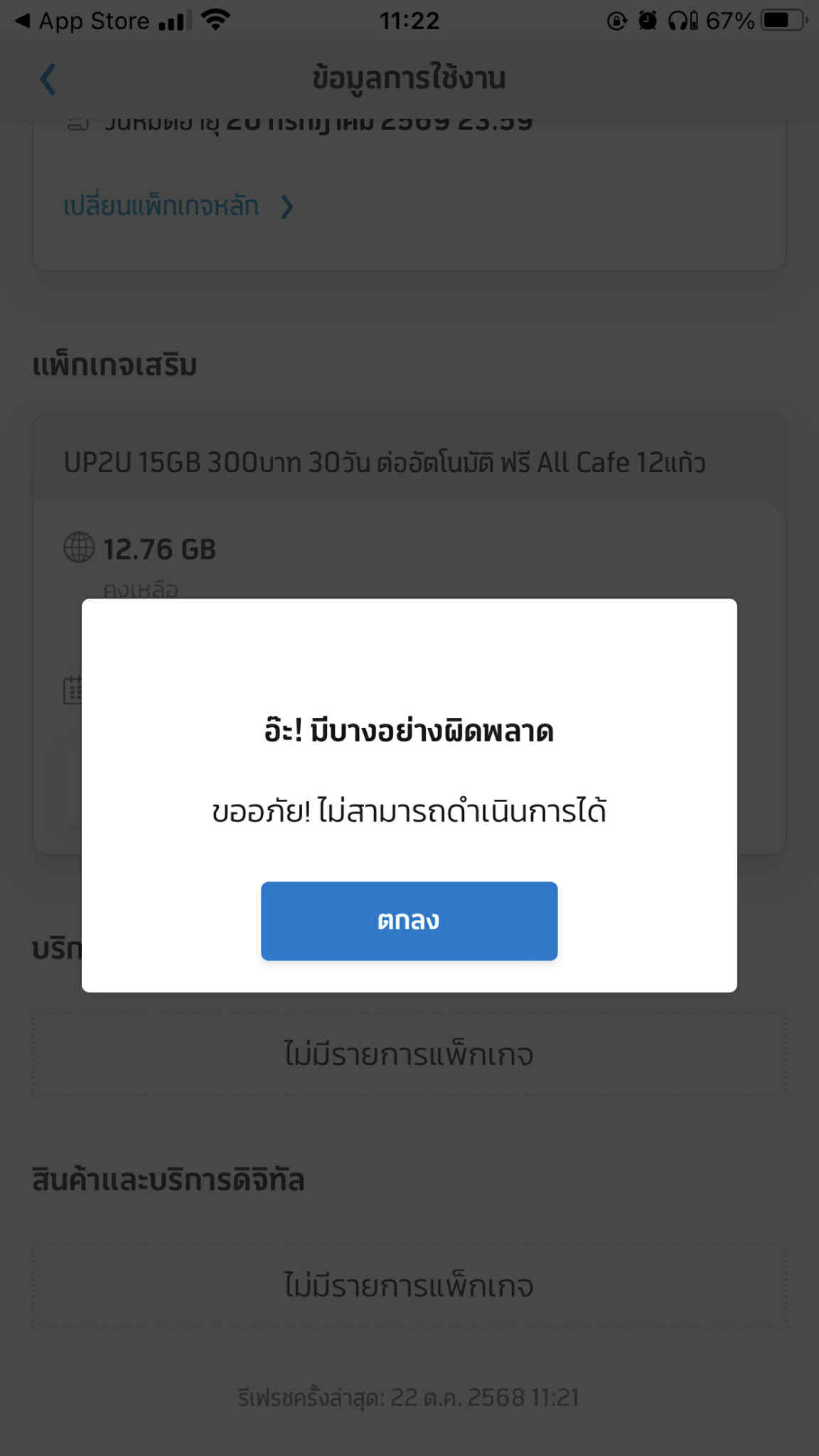 ต้องการยกเลิก แพ็กเสริม UP2U 15GB 300 บาท 30วัน ต่ออัตโนมัติ ฟรีAll cafe 12 แก้ว ลองกดยกเลิกในแอพก็กดไม่ได้
