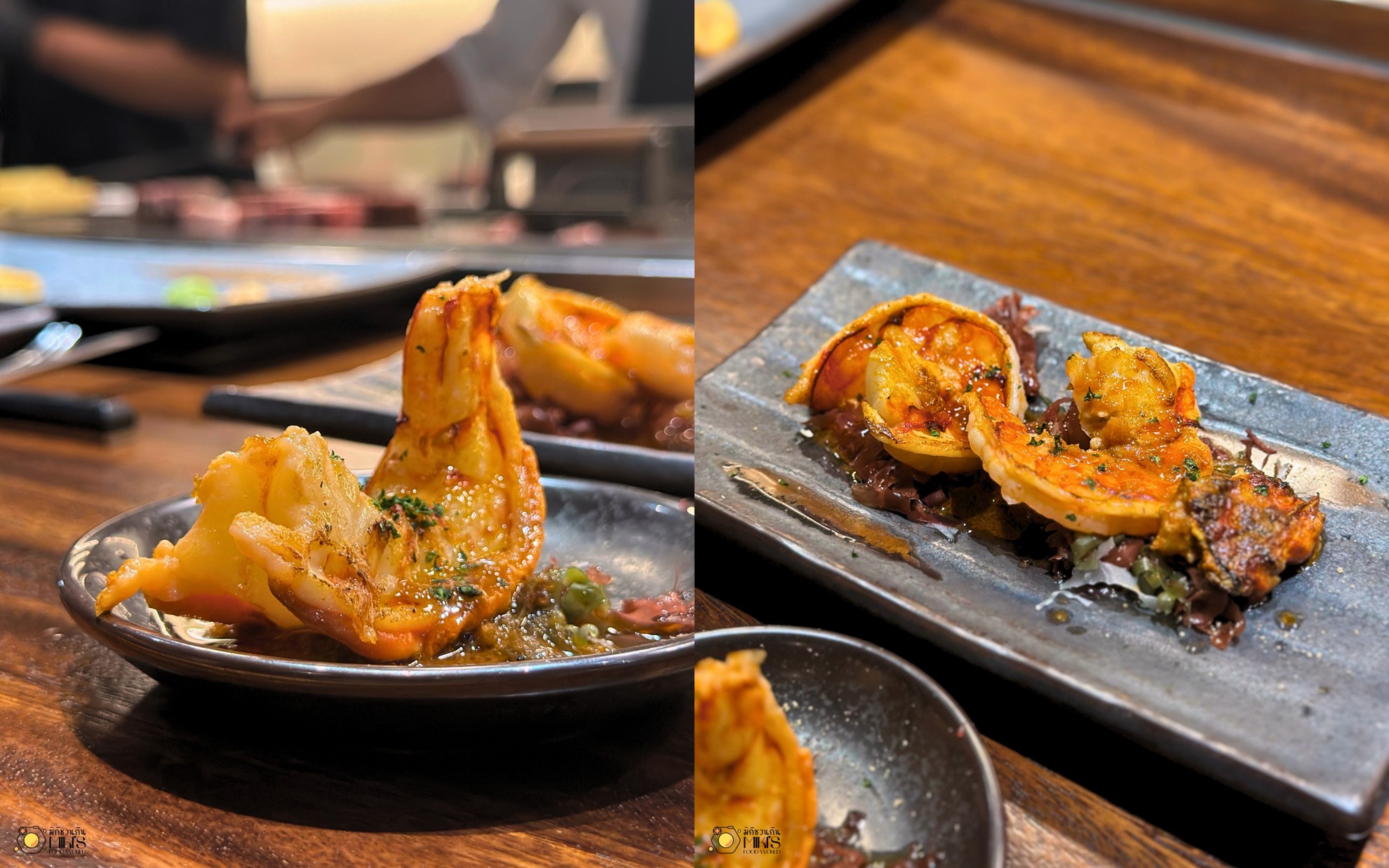 🍤 TIGER SHRIMP | EBI MISO BUTTER (350+ / ตัว 120 กรัม) กุ้งลายเสือตัวโต ย่างด้วยไฟเทปันจนสุก เนื้อฉ่ำ เคลือบซอสยุซุบัตเตอร์หอมมัน มีรสหวานเค็มมันตัดกันลงตัว กินแล้วได้กลิ่นสโมคบางๆ จากกระทะเหล็ก