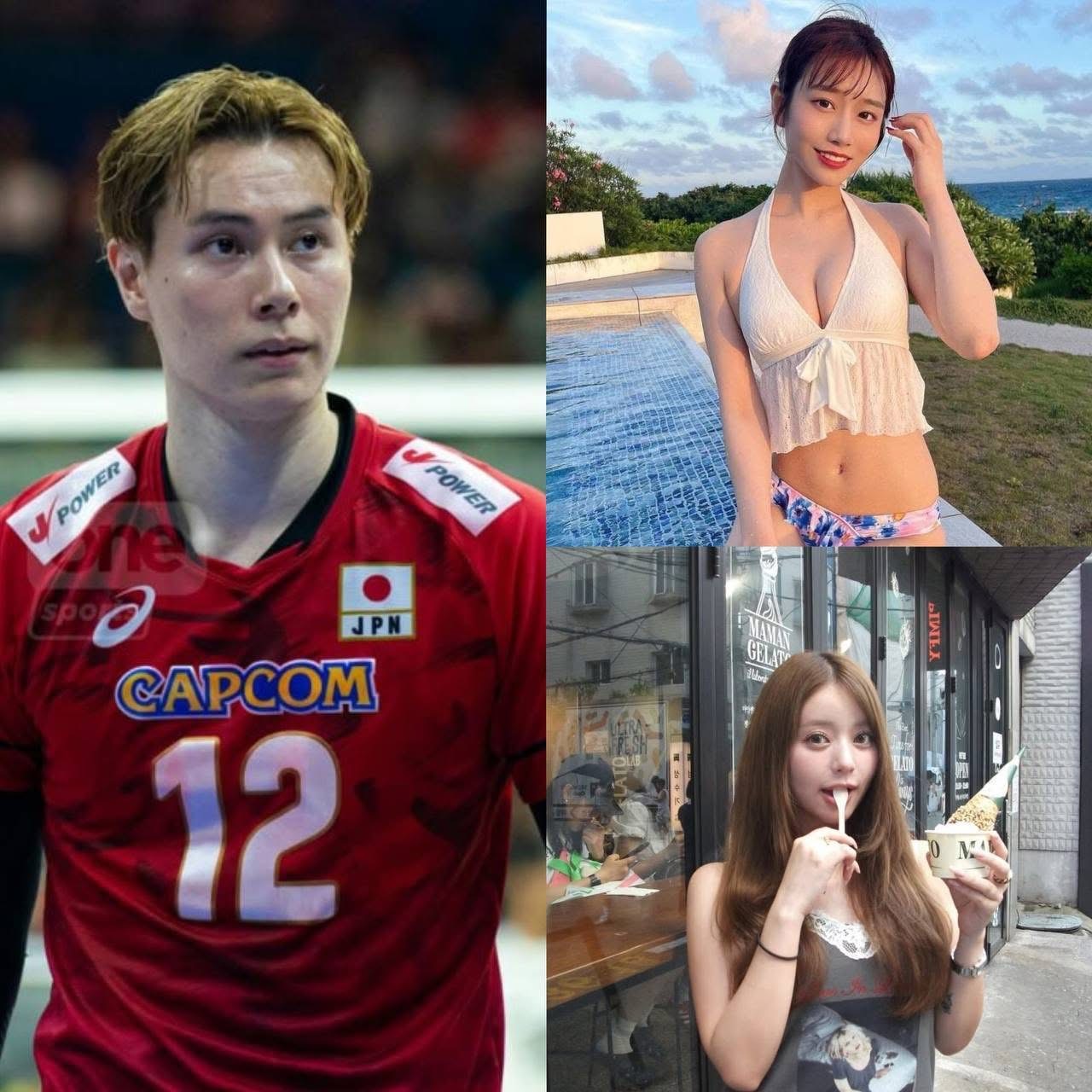 แต่มีข่าวออกมาว่าได้คั่วกับสาวดาราเอวี อย่าง ซายากะ คาวาคิตะ (ขวาบน)