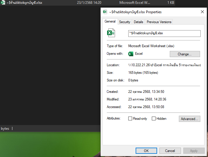 ไฟล์ > ~$อะไรซักอย่าง.xlsx