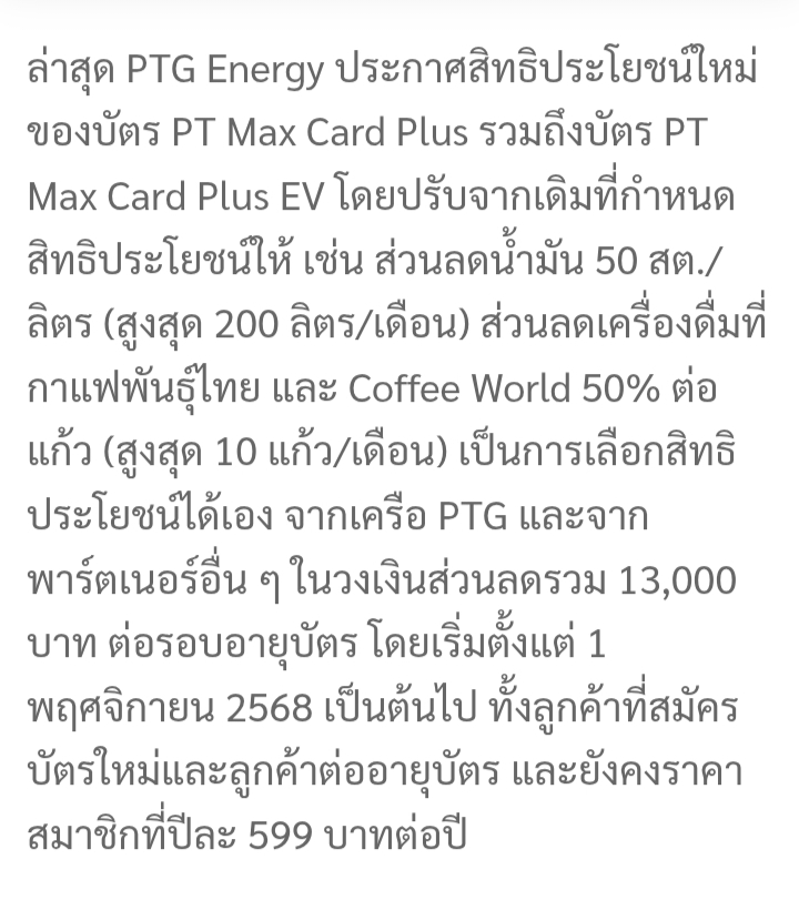 PT Max Card Plus ปรับแพ็กใหม่ เลือกส่วนลดได้เอง เริ่ม 1 พ.ย. 68