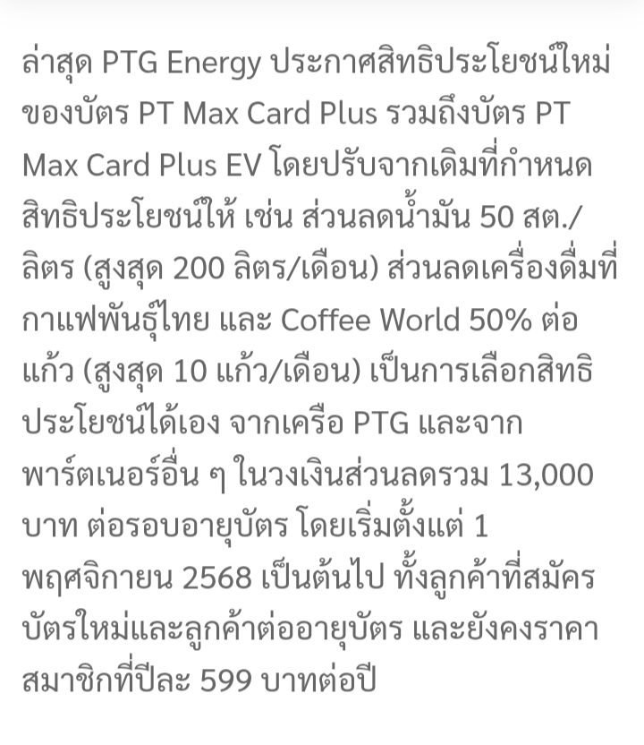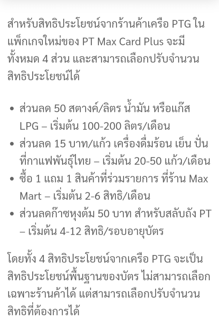 คอคงกาแฟไม่ชอบแน่นอน จากลด 50% เหลือ ลด 15 บาท PT Max Card Plus ปรับแพ็กเกจใหม่ ไม่มีลดกาแฟครึ่งราคา แต่ให้ลูกค้าเลือกส่วนลดได้เอง ในวงเงินส่วนลด 13,000 บาท ทั้งน้ำมัน-กาแฟ-ดีลิเวอรี่-ช็อปออนไลน์ ม