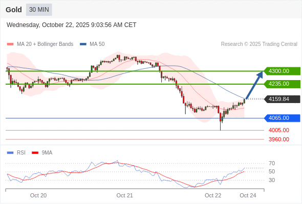 แนวทางการเทรด: หากราคาสูงกว่า 4065 มีโอกาสที่ราคาจะขึ้นไปที่ 4235 และ 4300