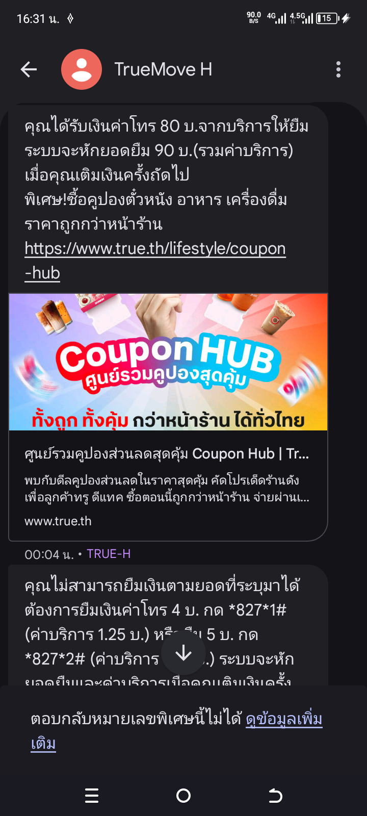 ยืมเงินTrueพอเติมเงินเพิ่มปุปหักเลยทั้งที่ยังไม่ได้ใช้เลย