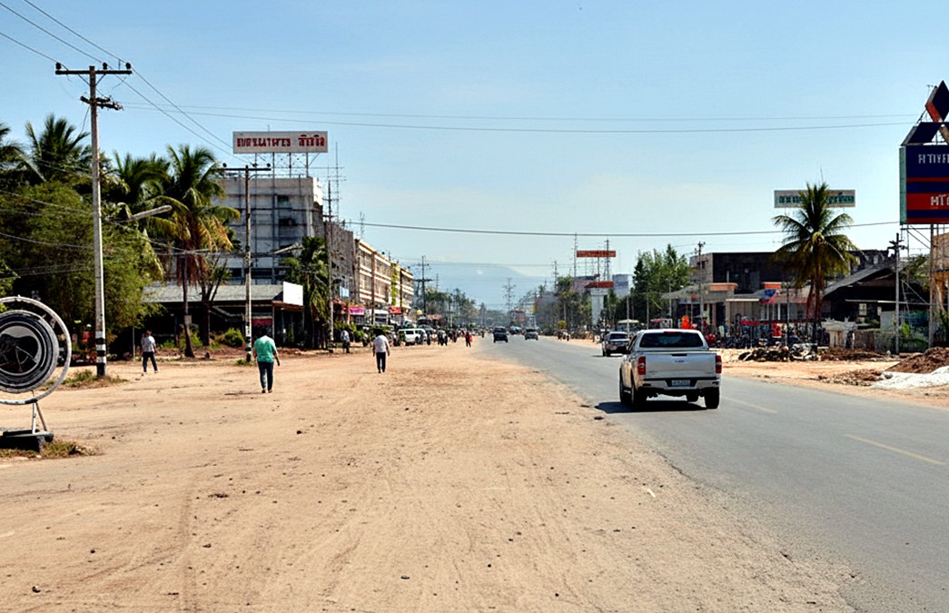 ในภาพ ถนนยังเป็นสองเลนส์ มีป้ายปั้มน้ำมันสามทหาร