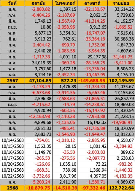 Sinthorn Summary 22/10/2568 : ต่างชาติซื้อสุทธิ 4,097.05 ลบ.
