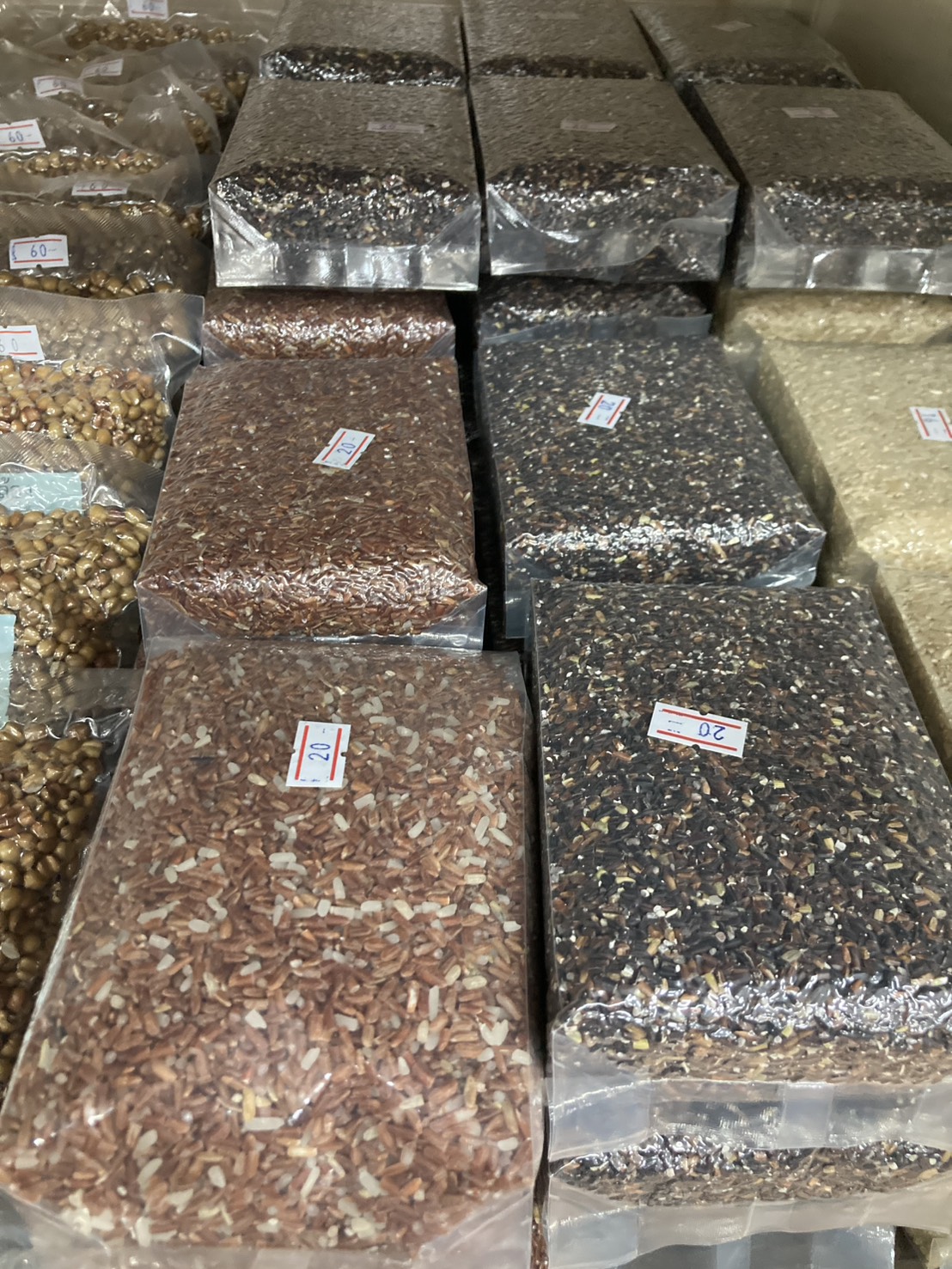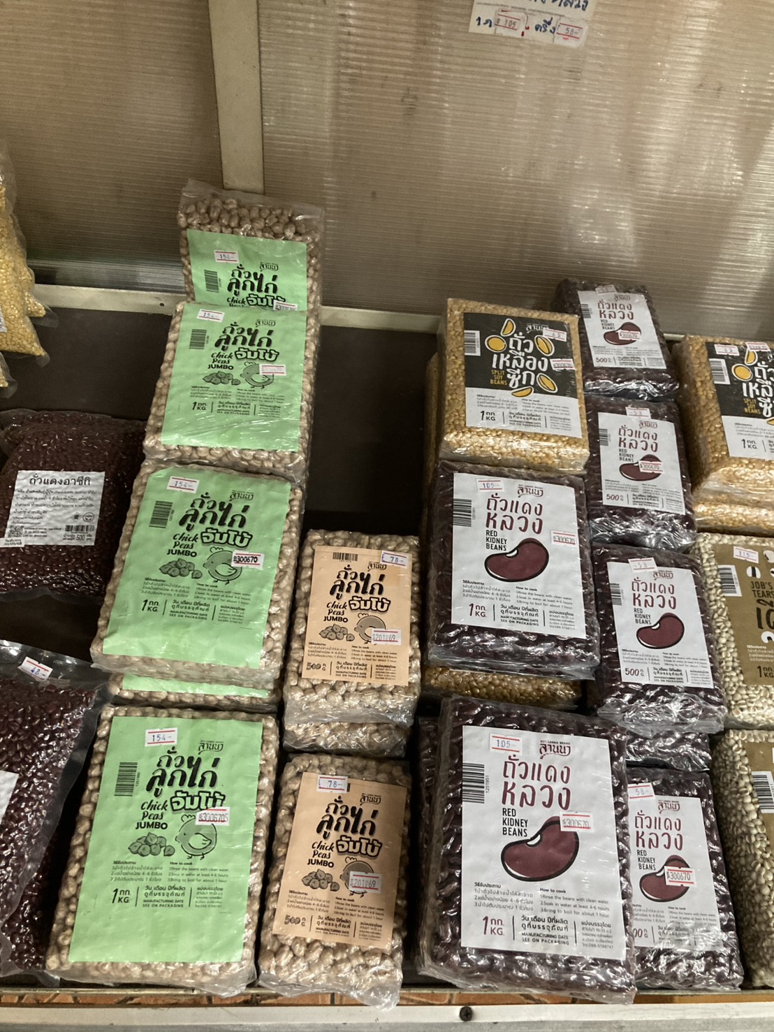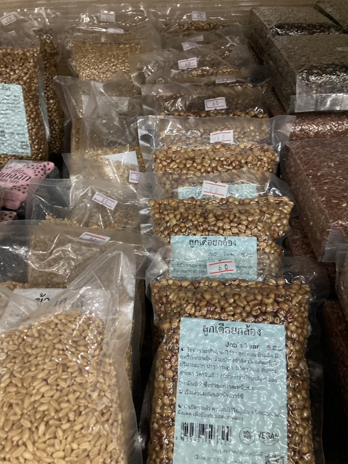 โซนธัญพืชมาของเยอะมากๆ กัมบอลซื้อเมล็ดฝักทอง กับถั่วลูกไก่ เมล็กฝักทองเอามาอบไว้กินเล่น และโรยในสลัด ช่วงกินเจ ร่างกายอาจ