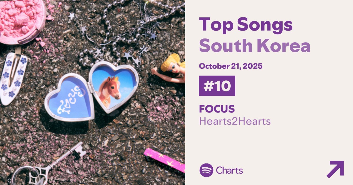 Hearts2Hearts, FOCUS. ขึ้นอันดับเข้าสู่ top10 บนชาร์ต Spotify [KR] Daily ได้สำเร็จ.