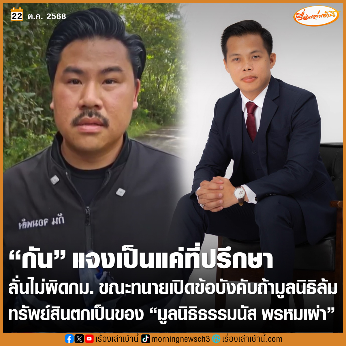 “กัน จอมพลัง” แจงเป็นที่ปรึกษา “มูลนิธิกันจอมพลังช่วยสู้” ทนายเผยถ้าล้มเลิกไป ทรัพย์สินทั้งหมดตกเป็นของ “มูลนิธิธรรมนัส”