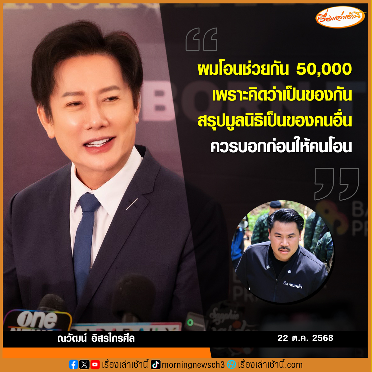 ณวัฒน์ อิสรไกรศีล หรือ “บอสณวัฒน์” โพสต์เปิดใจกรณีการก่อตั้ง “มูลนิธิกันจอมพลังช่วยสู้” ที่กำลังเป็นประเด็นวิพากษ์วิจารณ์ โดยระบุข้อความว่า “ผมโอนช่วยกัน 50,000 เพราะคิดว่าเป็นของกันสรุปมูลนิธิเป็นของคนอื่น ควรบอกก่อนให้คนโอน”
