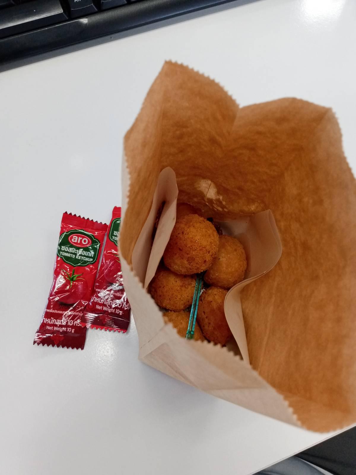 ขนาดเล็กและหดลงเยอะเลย นึกว่าขนมไข่นกกระทาทอดซะอีก