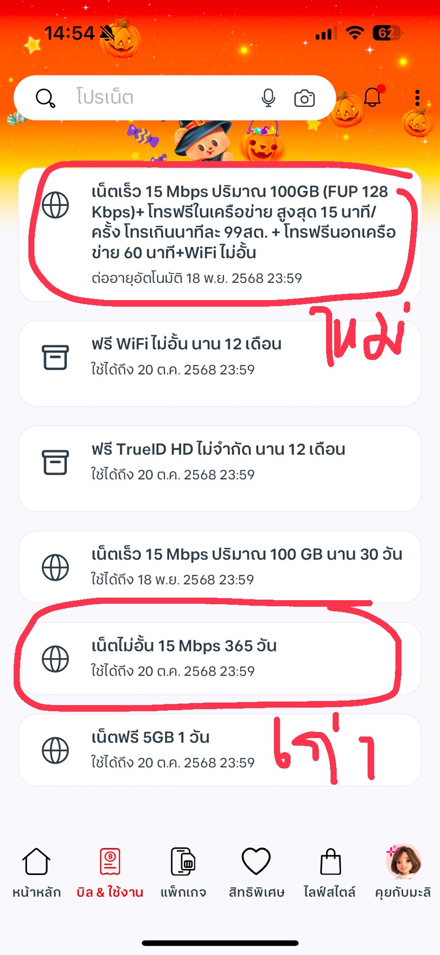 เมื่อวันที่ 20/10/68 ซิมเน็ตทรูเติมเงิน(รายปี) โปรเน็ต 15 Mbps ไม่จำกัด จะหมด เวลา 23.59 น. ของวัน ก็คิดอยู่ว่าจะซื้อซิมใหม่หรือเติมเงินไปดี(คุณพ่อก็ใช้เน็ตรายปีเหมือนกัน เบอร์ของเค้ามีข้อความแจ้งมาให้เติมเงินและสมัครไปได้โปรเดิม) ทางเราก็รอแต่ก็ไม่มีข้อความมา แต่เวลา 13.37 น. วันที่ 20/10/68 มีเจ้าหน้าที่โทรมาเสนอโปรเดิมให้ก็น่าสนใจ เจ้าหน้าที่แจ้งให้เติมเงินทิ้งไว้ 2090 บาท และได้โปรเน็ตเดิม
