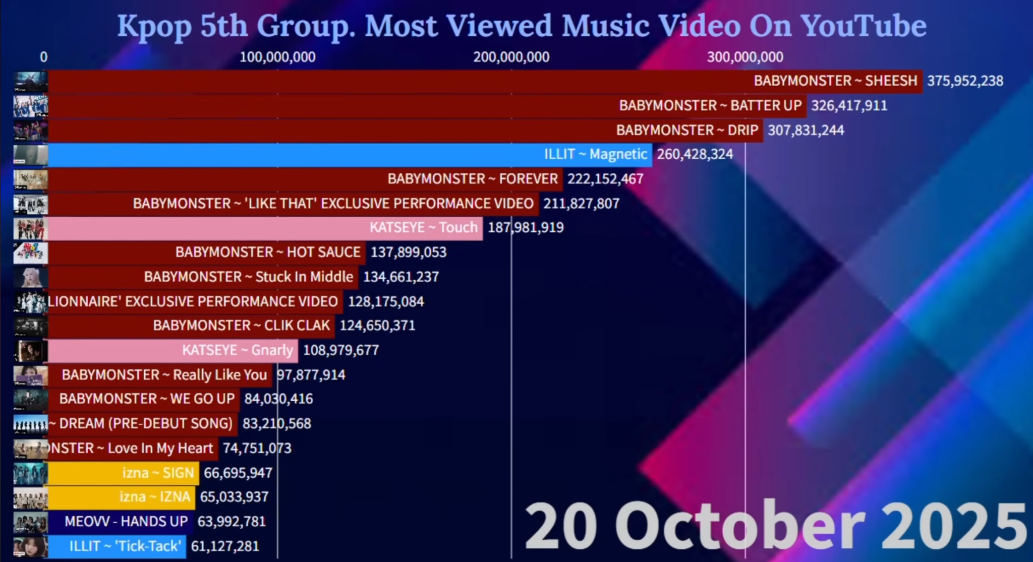 Most Viewed Music Video Kpop 5th Gen Group On YouTube | October 2025