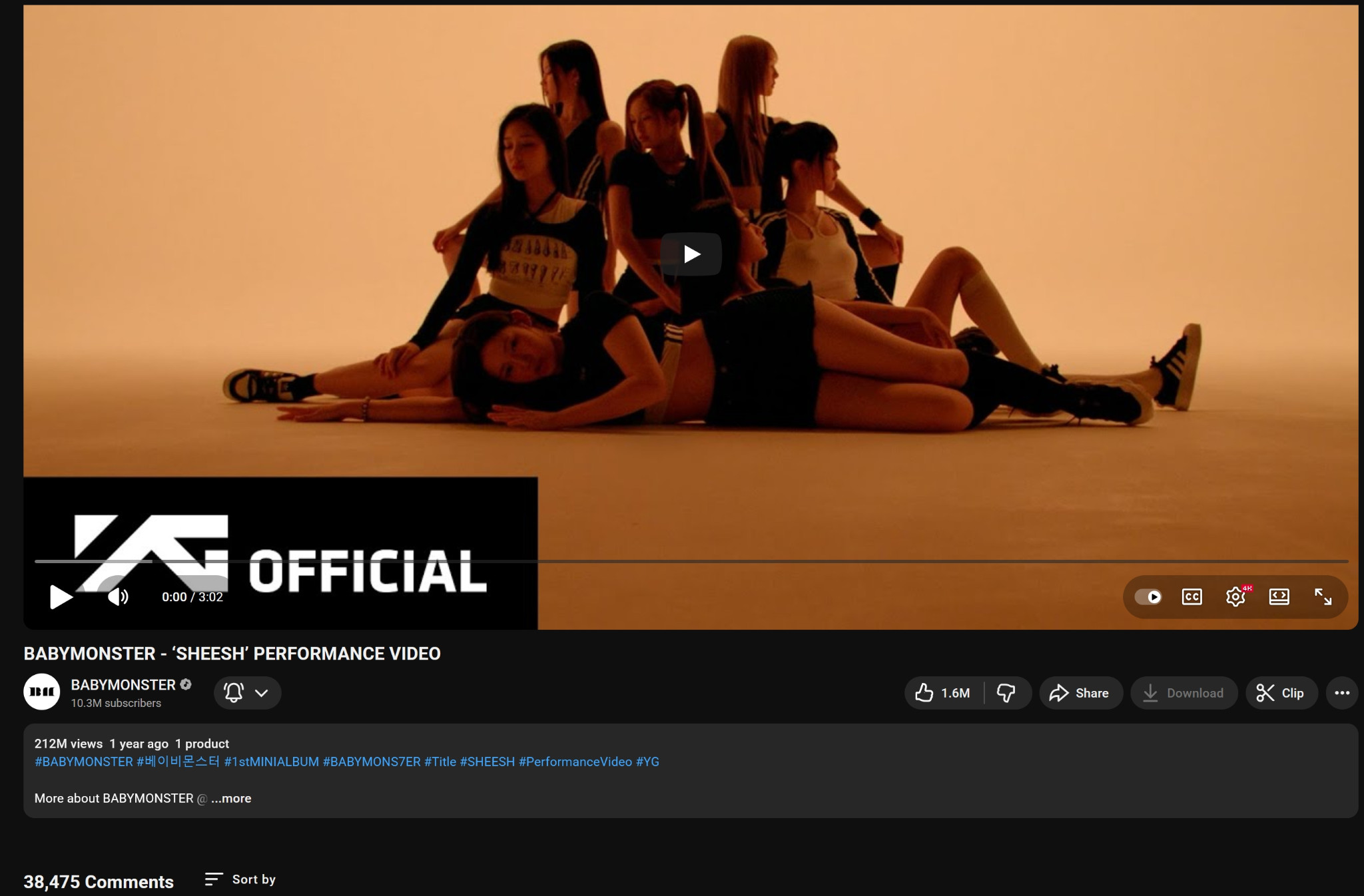 ‘SHEESH’ PERFORMANCE VIDEO ยอดวิว 212 ล้านวิว