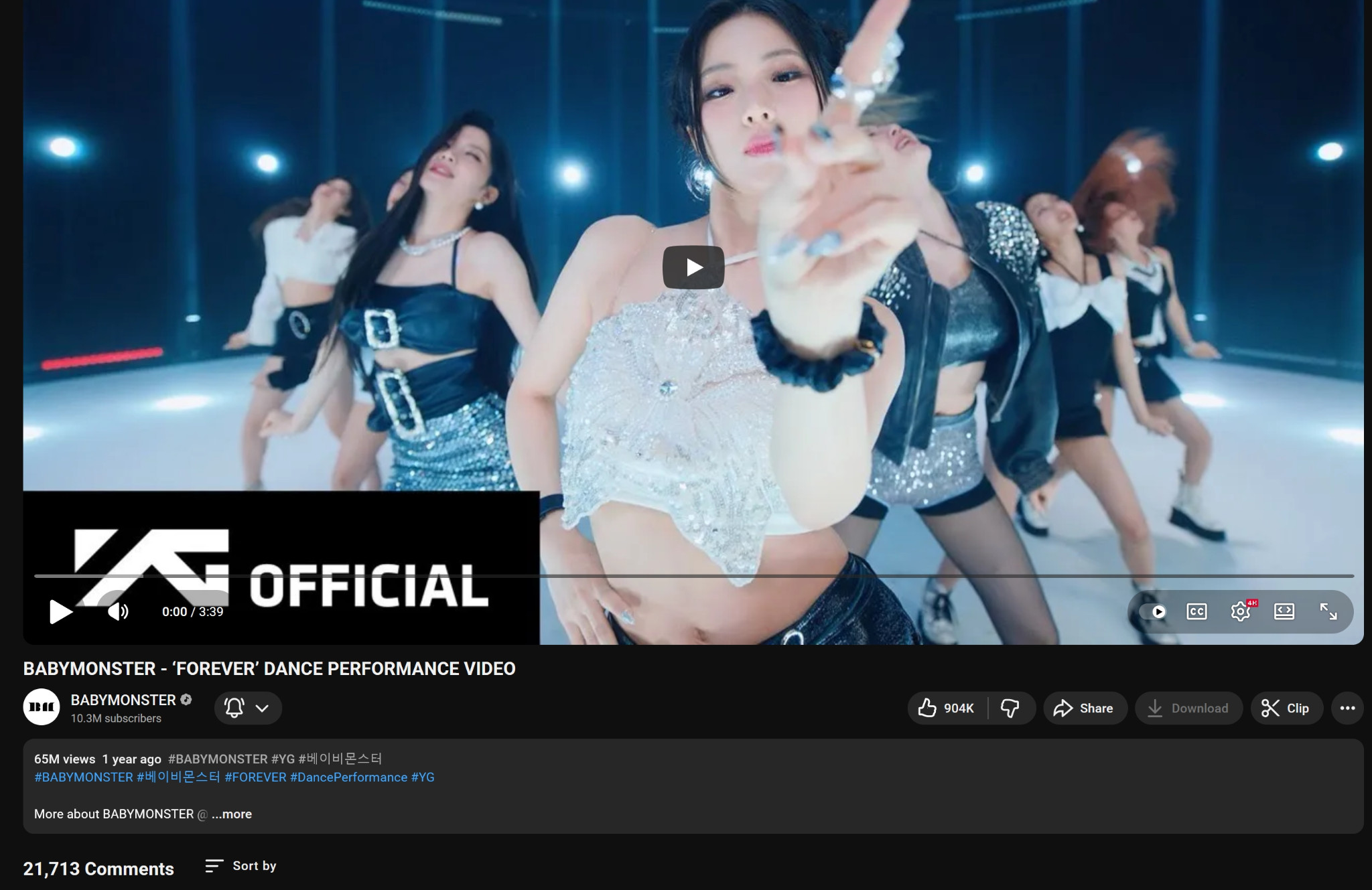 ในกรณีของ Babymonster จะพิเศษกว่าวงอื่นหน่อย ตรงที่คลิปเต้นต่างๆ จะมียอดวิวที่สูงมากเช่นกัน เนื่องจากฐานแฟนคลับที่ใหญ่มากๆ ทำให้ยอดวิวพวกนี้ปกติจะไม่สูงมาก แต่ของ Babymonster กลับสูงมาก เพราะงั้นถ้ารวมเอาพวก Dance Performance อื่นๆ มารวมด้วย คัดเอาเฉพาะที่มียอดวิวเกิน 60 ล้าน ก็จะมียอดวิวอัพเดทตามนี้