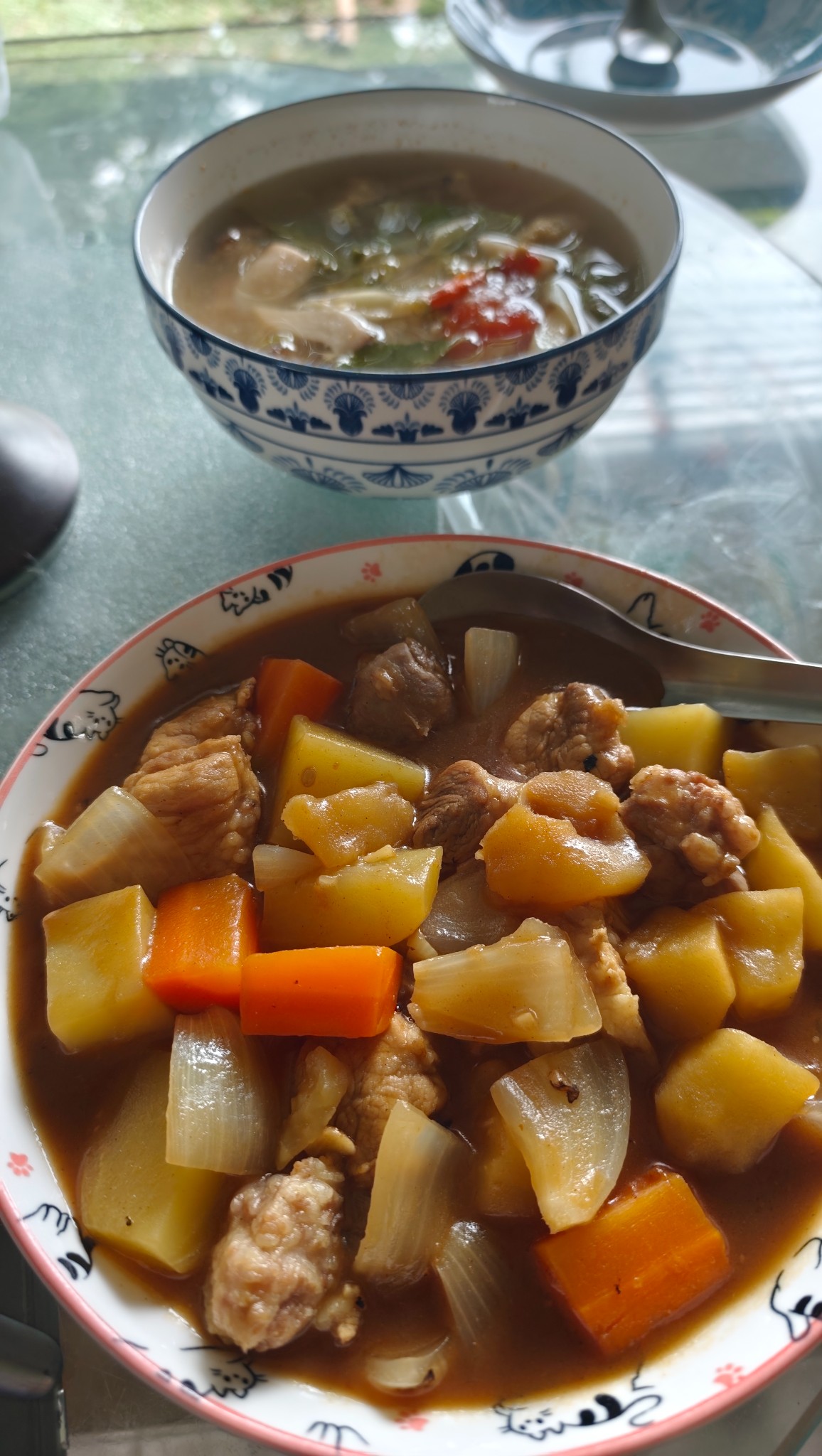 วันนี้เอารูปมาโชว์เพื่อนๆสมาชิกอย่างเดียวเลย วิธีการทำ ทำตามหลังกล่องแกงกระหรี่สำเร็จรูปที่ซื้อมาเลยครับ มีอีกสองสามรสชาติวันหลังค่อยซื้อมาลองทำอีกครับ