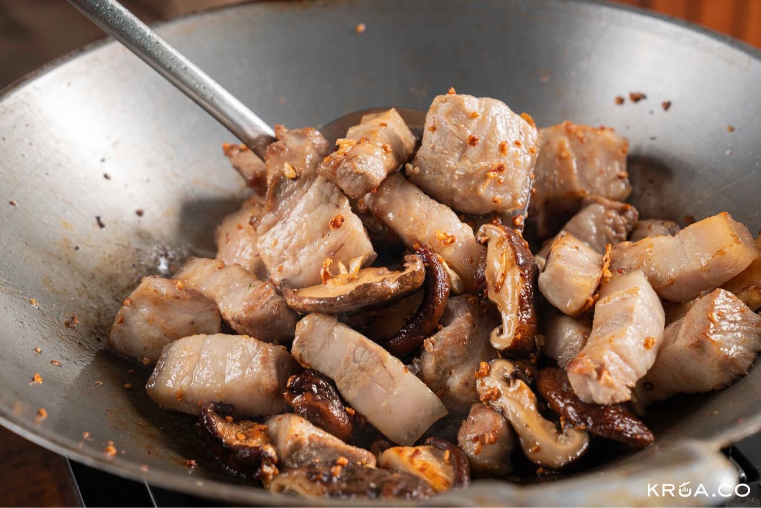 3.การผัดไฟแรงให้ขึ้นสี การผัดเนื้อสัตว์และผักด้วยไฟแรง คือ ปฏิกิริยาสร้างกลิ่นหอมและสีน้ำตาลหรือที่เรียกว่าปฏิกิริยาเมลลาร์ด(Maillard Reaction) ทำให้ได้รสชาติที่มีมิติ ส่วนผักก็เป็นการขับน้ำออก ทำให้ผักเปื่อยเร็วขึ้นและซับเอารสชาติของน้ำซุปเข้าไปได้มากขึ้น นอกจากนี้การให้ความร้อนต่ำซ้ำๆ ยังกระตุ้นให้โมเลกุลของไขมัน โปรตีน และคาร์โบไฮเดรตเกิดการแตกตัวและรวมตัวกันใหม่ ก่อให้เกิดสารประกอบที่ให้กลิ่นและรสชาติใหม่ๆ ที่ซับซ้อนยิ่งขึ้น ทำให้รสชาติและกลิ่นของจับฉ่ายในวันถัดไปแตกต่างและดีขึ้นกว่าวันแรก