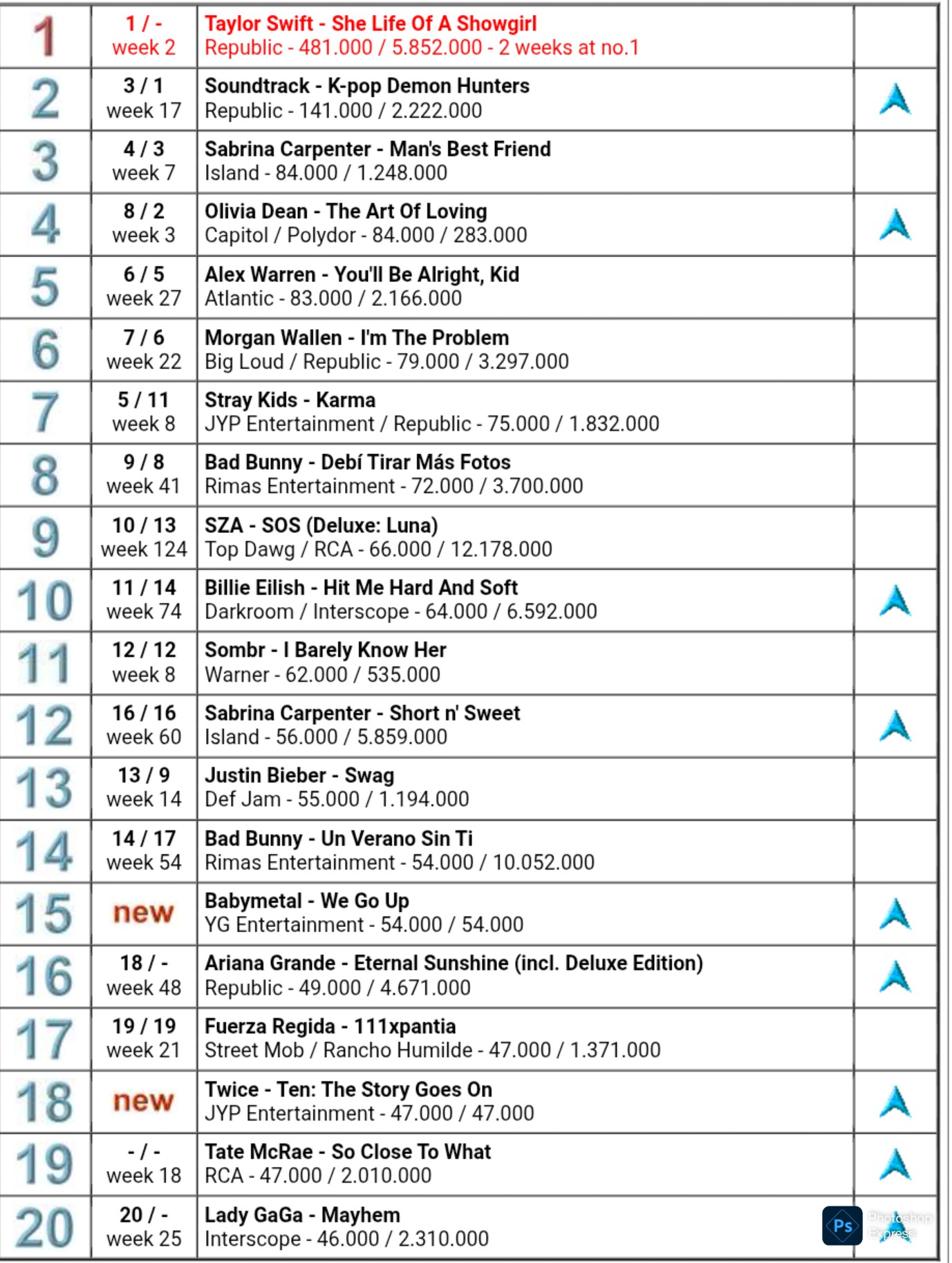 อัลบั้ม WE GO UP ของ BABYMONSTER เดบิวต์บน United World Album Chart ในอันดับที่ 15 เป็นอันดับสูงสุดของเคป๊อปเกิร์ลกรุ๊ป