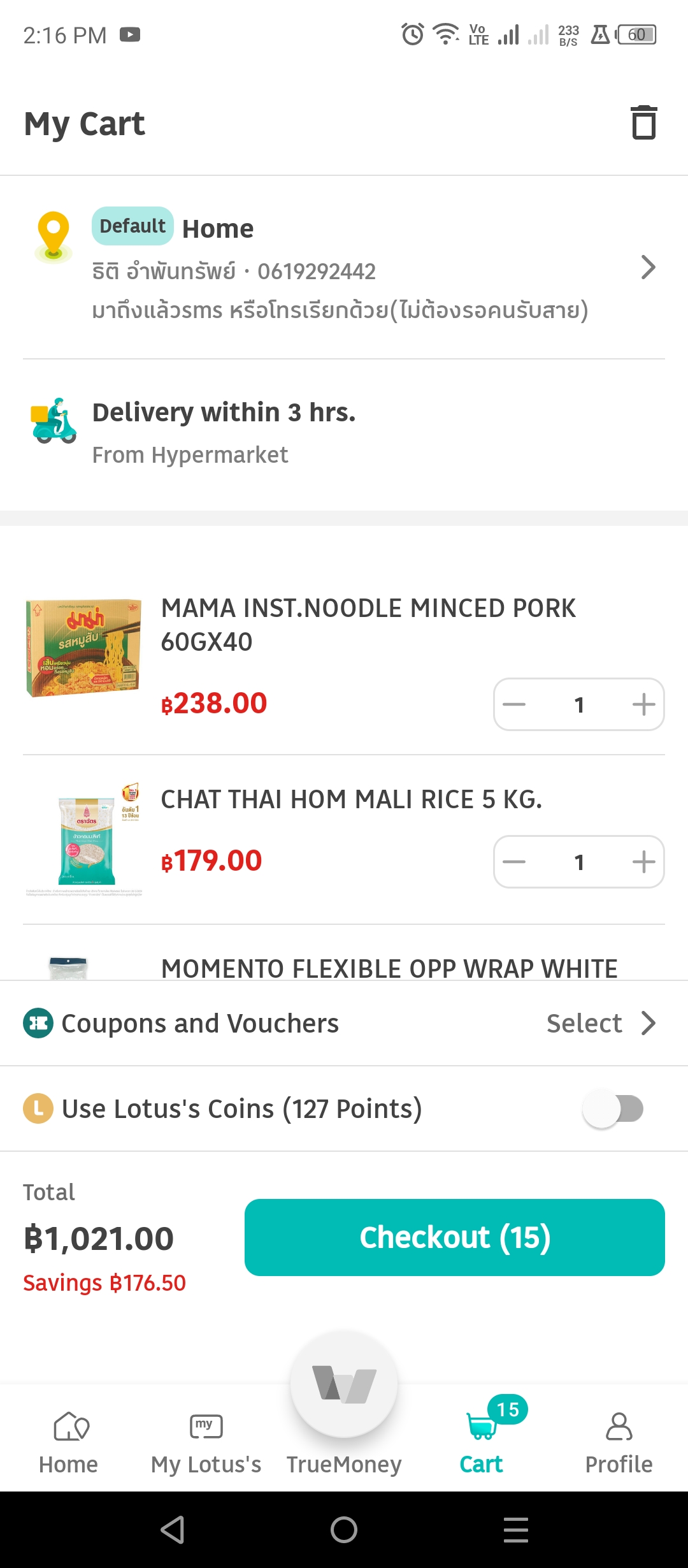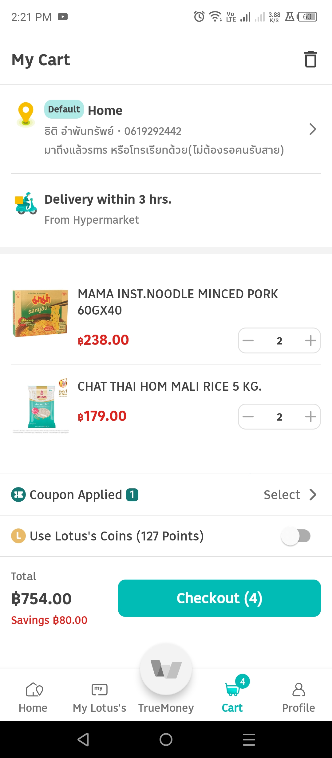 1. ผมมีคูปองเงินสด 30 บาท อยู่ 2 ฉบับ รวม 60 บาท ดาวน์โหลดไว้ในแอพ วันนี้ (3 มิถุนายน 2560) กะว่าจะใช้ ปรากฏว่า แคชเชียร์แจ้งว่ามีคนใช้ไปแล้ว 2. ผมมั่นใจว่า ไม่เคยใช้คูปองดังกล่าวเลย จึงได้โทรไปแจ้งค