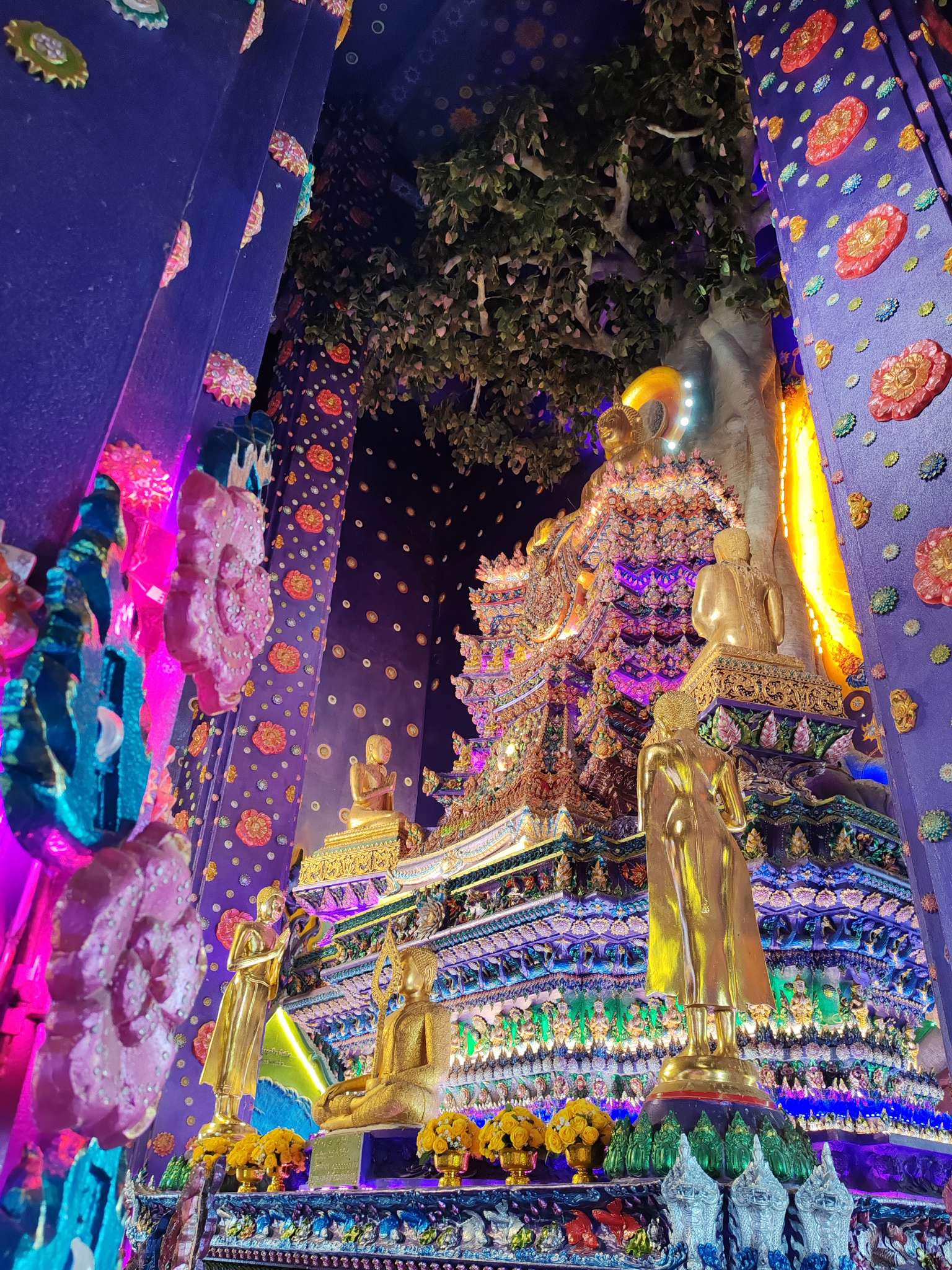 ด้านหลังพระประธาน มีต้นพระศรีมหาโพธิ์จำลอง สามารถมาเดินลอดใต้ต้นโพธิ์เพื่อความเป็นสิริมงคล ได้นะครับ