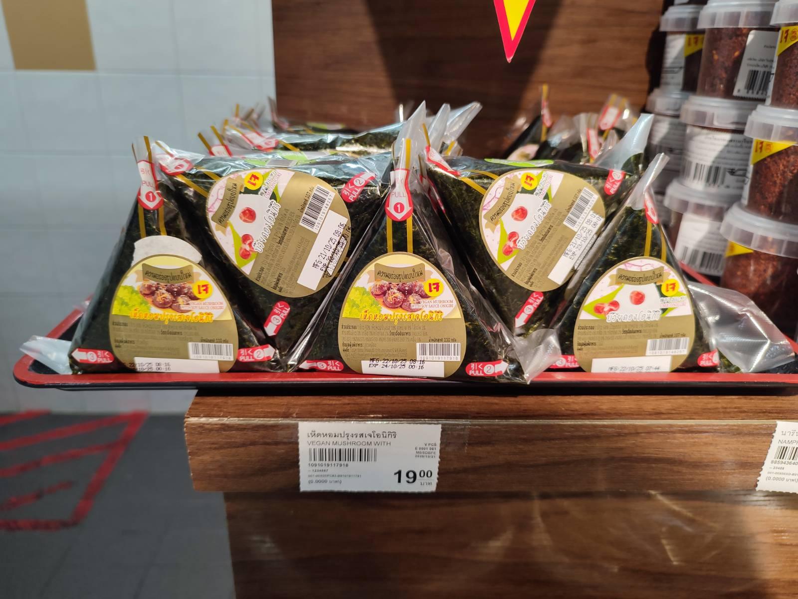 ไปดูอาหารเจ ที่ห้างสไตล์ญี่ปุ่น มีเยอะครับ แปลกใหม่ ข้าวปั้นห่อสาหร่ายเจ รสเห็ดหอม น่ากินมาก แต่ผมไม่กินเห็ดหอมครับ