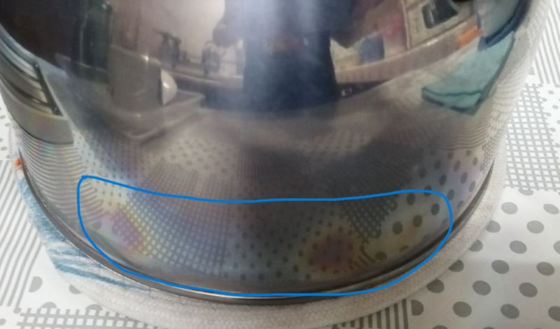 เราก็โอเค ลองใช้ต่อไปก็ได้ แม้จะรู้สึกแปลกๆ แต่ปัญหาสำคัญกว่าคือ มันทำให้กาต้มน้ำของเราเกิดรอยที่คล้ายๆ กับสีรุ้ง (ที่วงไว้)