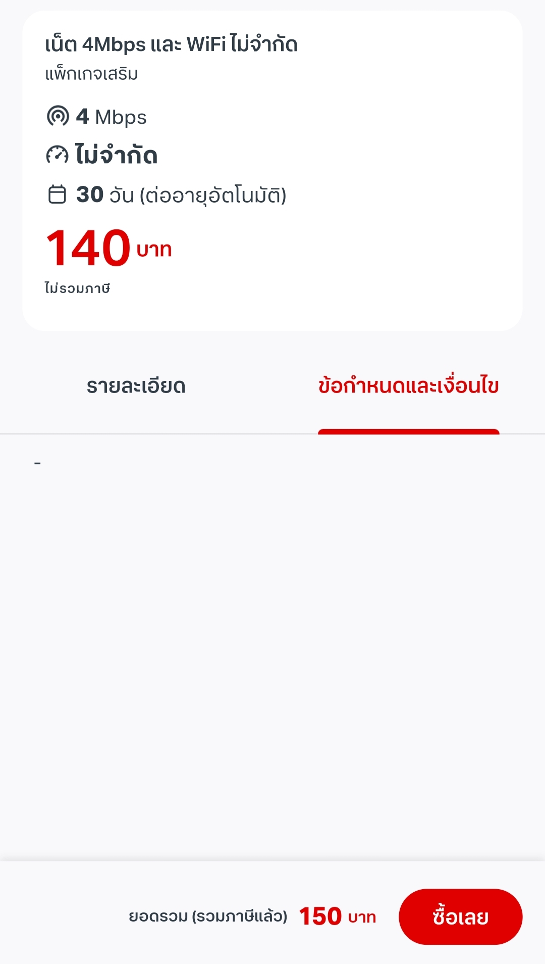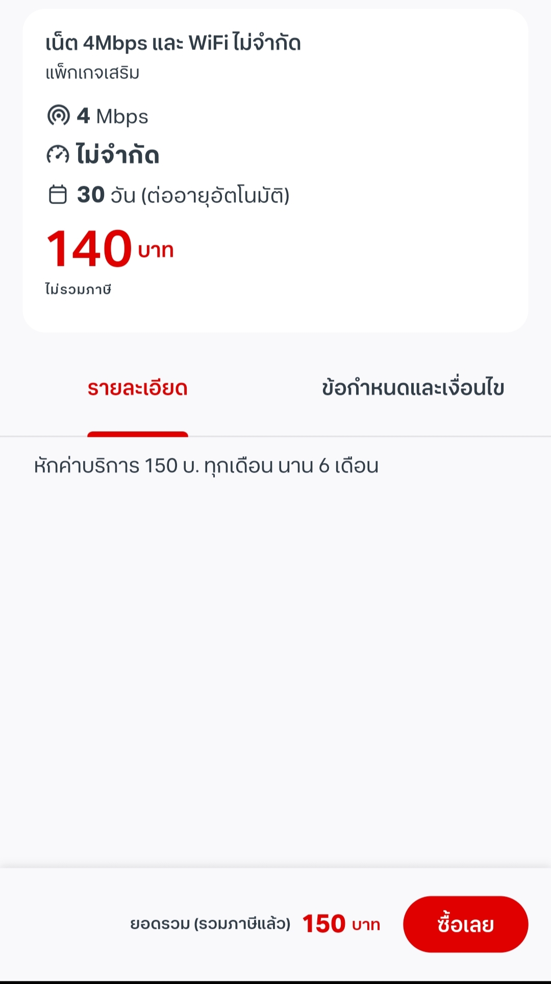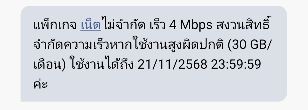 สัญญาคือว่า หนูไปเห็นโปรนี้มาคะแล้วน่าสนใจเลยซื้อ 30 วัน ราคา200 บาท ซื้อเมื่อวันที่ 8 พ.ย. 68 แต่ตอนนี้หนูใช้เน็ตแล้วทำอะไรไม่ได้เลยค่ะเข้าธนาคารก็ช้ามากรอนานมากๆกว่าจะขึ้นมีหลายครั้งที่ไม่ขึ้นแค่หนู