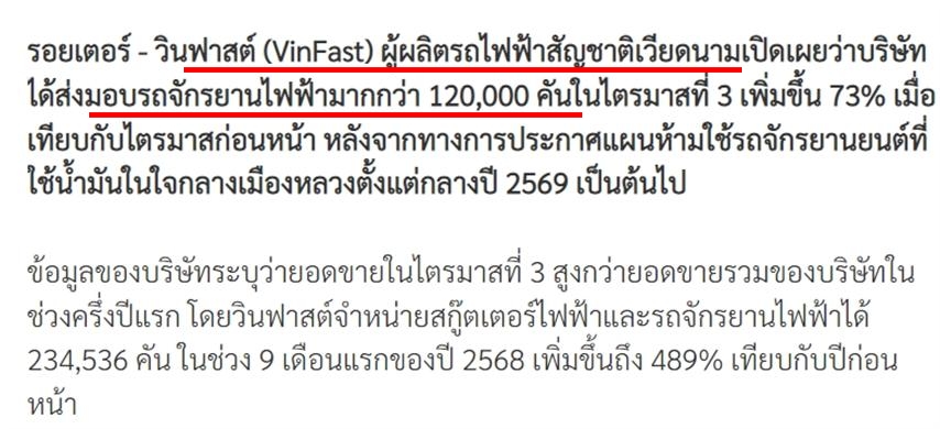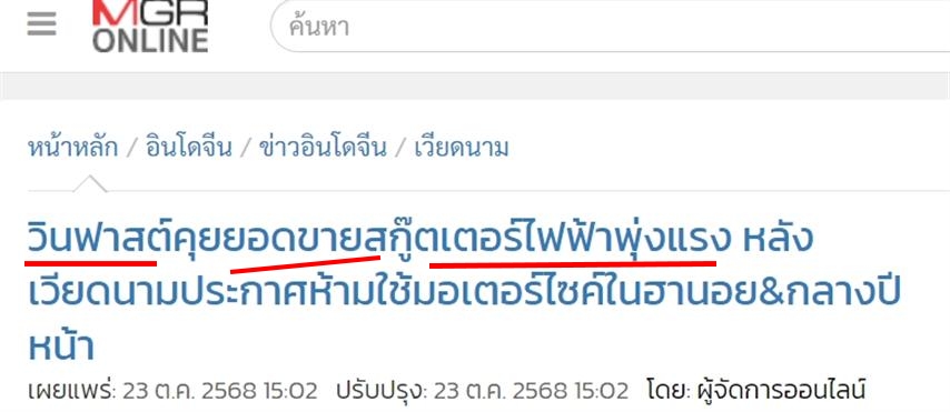 vinfast รถเวียดนาม ผลิตสกู๊ตเตอร์ไฟฟ้าใช้เองในประเทศด้วยนะ