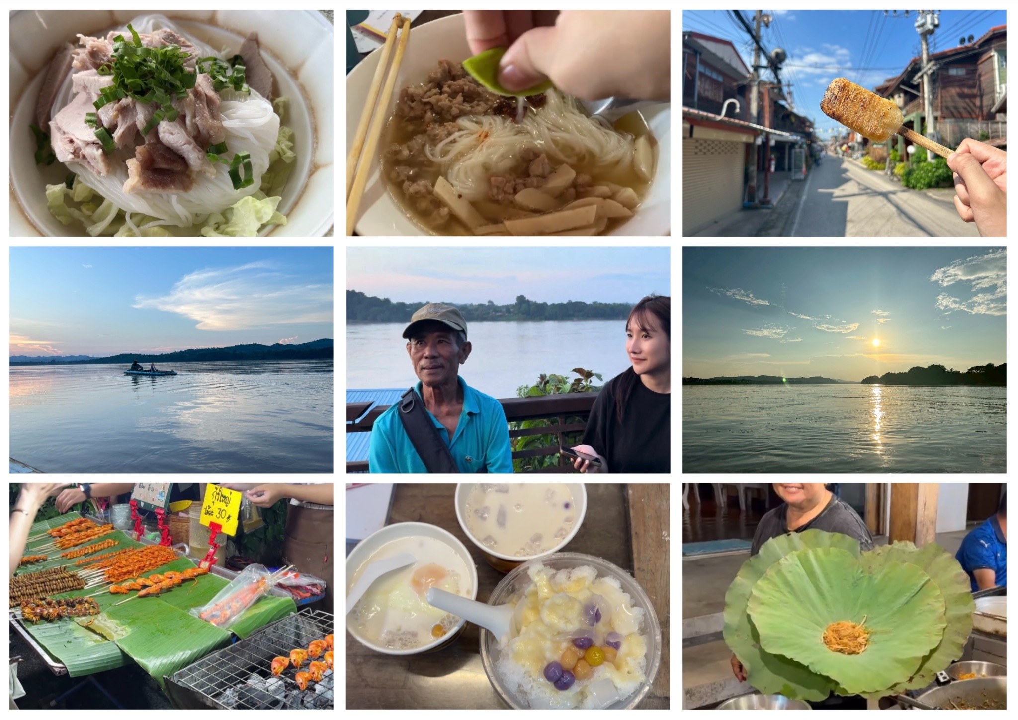 ระหว่างรอเวลาเดินทางกลับ เราแวะนั่งคาเฟ่ Flowa’coffee จิบชา กาแฟ ถ่ายรูป ช่วงบ่ายที่มีแอร์เย็น ๆ ให้หายร้อนจากการทำจานกาบหมาก จากนั้นก็ขับกลับที่พัก แต่พอเริ่มบ่ายแก่ ๆ ก็เริ่มคุยกันว่าต่อไปไปไหนดี สุดท้ายก็ตัดสินใจขอยืมจักรยานจากที่พักมาปั่นเล่นค่าเวลาแทน อากาศตอนบ่ายประมาณสามโมงแดดอุ่น ๆ แต่ลมแม่น้ำพัดเย็น ทำให้ปั่นเพลินวนไปเรื่อย ๆ จนถึงราว ๆ 5–6 โมงเย็น แสงเริ่มนุ่ม🌅 เราเลยแวะถ่ายรูปเล่นกันตามทาง ก่อนจะปั่นกลับมาที่พักเอากระเป๋าเดินทางที่ฝากไว้ คืนมอเตอร์ไซค์ และเดินไปที่จุดลงรถเชียงคานปิดท้ายทริปเชียงคานของพวกเราพอดีค่ะ💛
