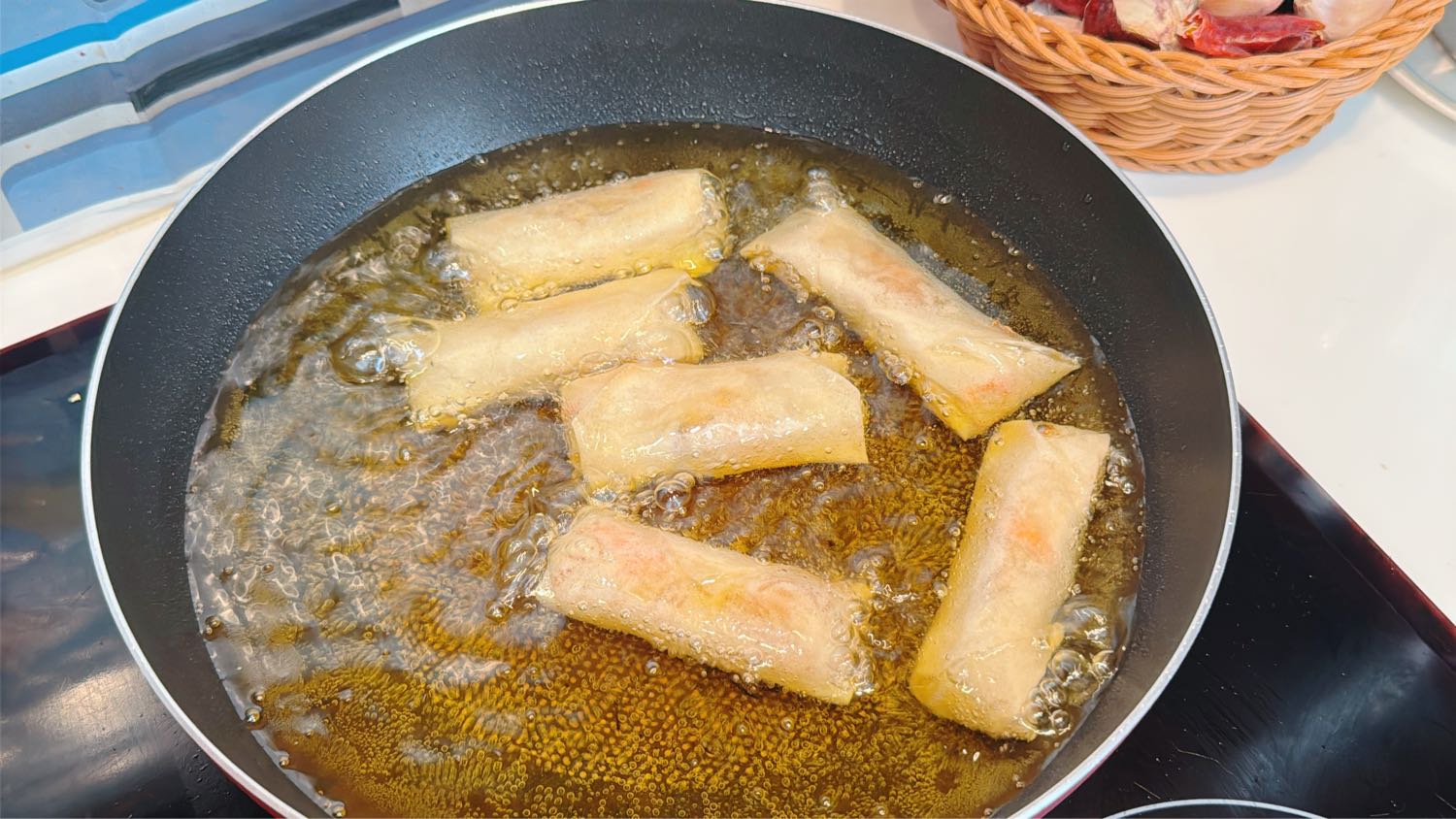 ทอดในน้ำมันร้อนปานกลาง ทอดให้แป้งเหลืองกรอบ