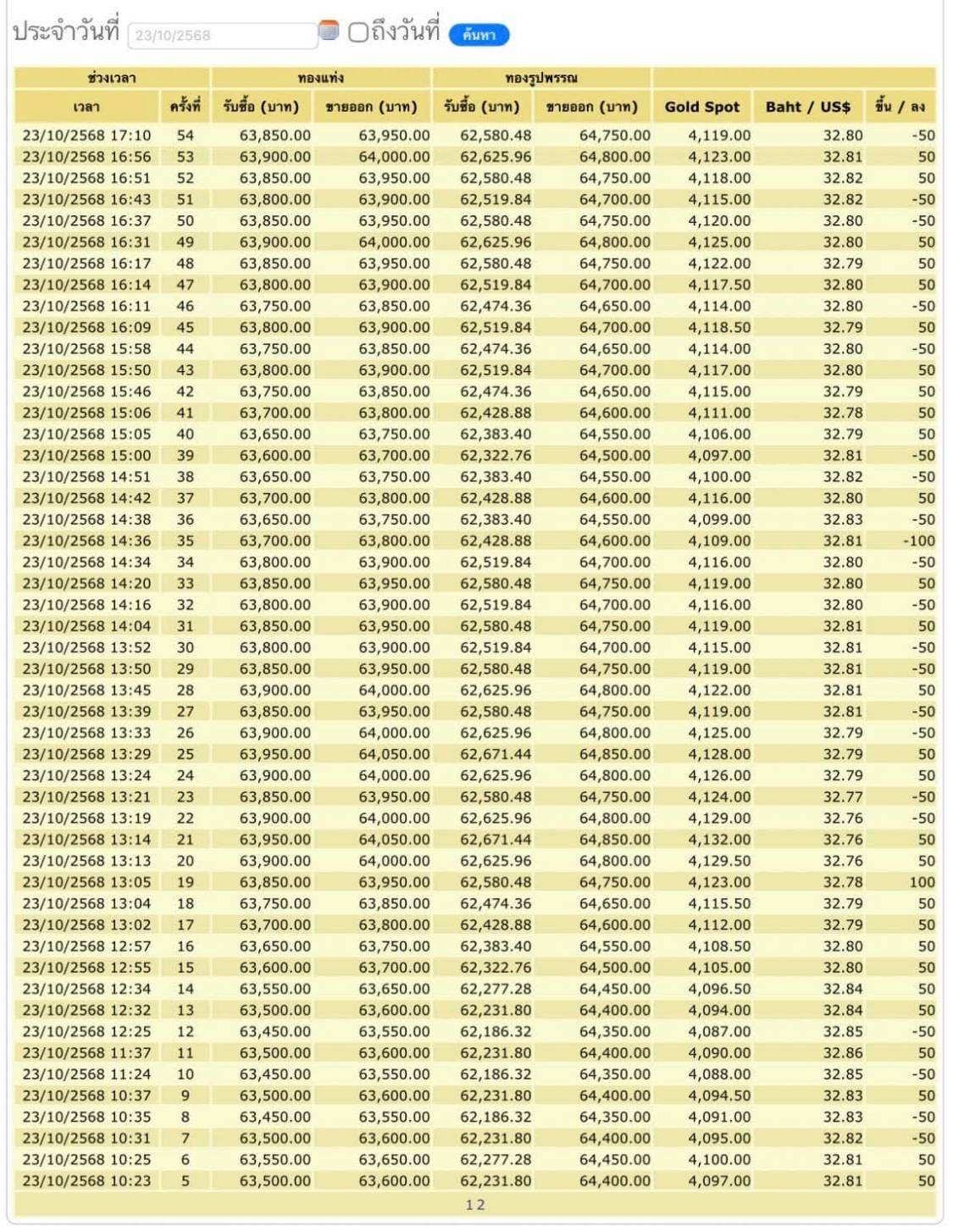 ผู้สื่อข่าวรายงานว่า เพจ MTS GOLD ของห้างทองแม่ทองสุก ระบุว่า จำนวนครั้งการปรับราคาทอง ของสมาคมค้าทองคำวันนี้ (23 ต.ค.) เยอะที่สุดในรอบ 3 ปี ถึง 54 ครั้ง