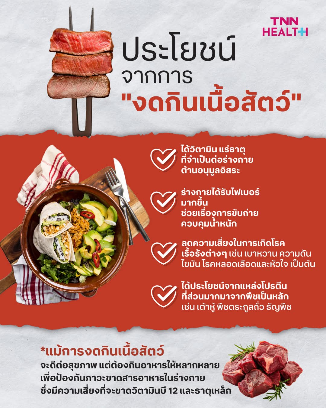 ประโยชน์จากการ "งดกินเนื้อสัตว์" .