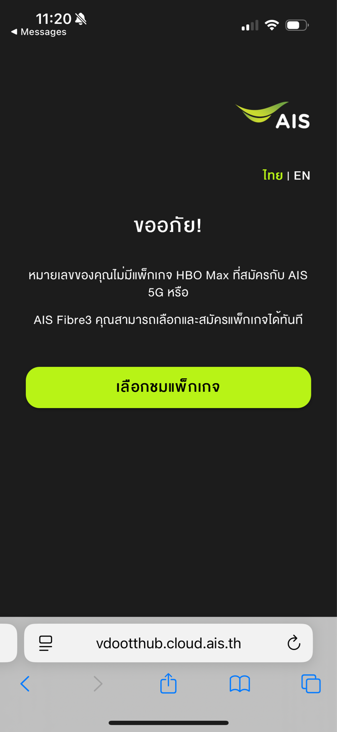 เพิ่งสมัครเน็ตบ้าน Ais Fibre3 Lite Gang ไปครับมีช่างเข้ามาติดอินเตอร์เน็ทให้เรียบร้อยครับ แต่ว่าลงทะเบียน HBO Max ไม่ได้ ซึ่งได้รับข้อความให้รับสิทธิ์แต่พอลงทะเบียนรับสิทธิ์ ขึ้นว่าไม่ได้สมัครแพ็คเกจ