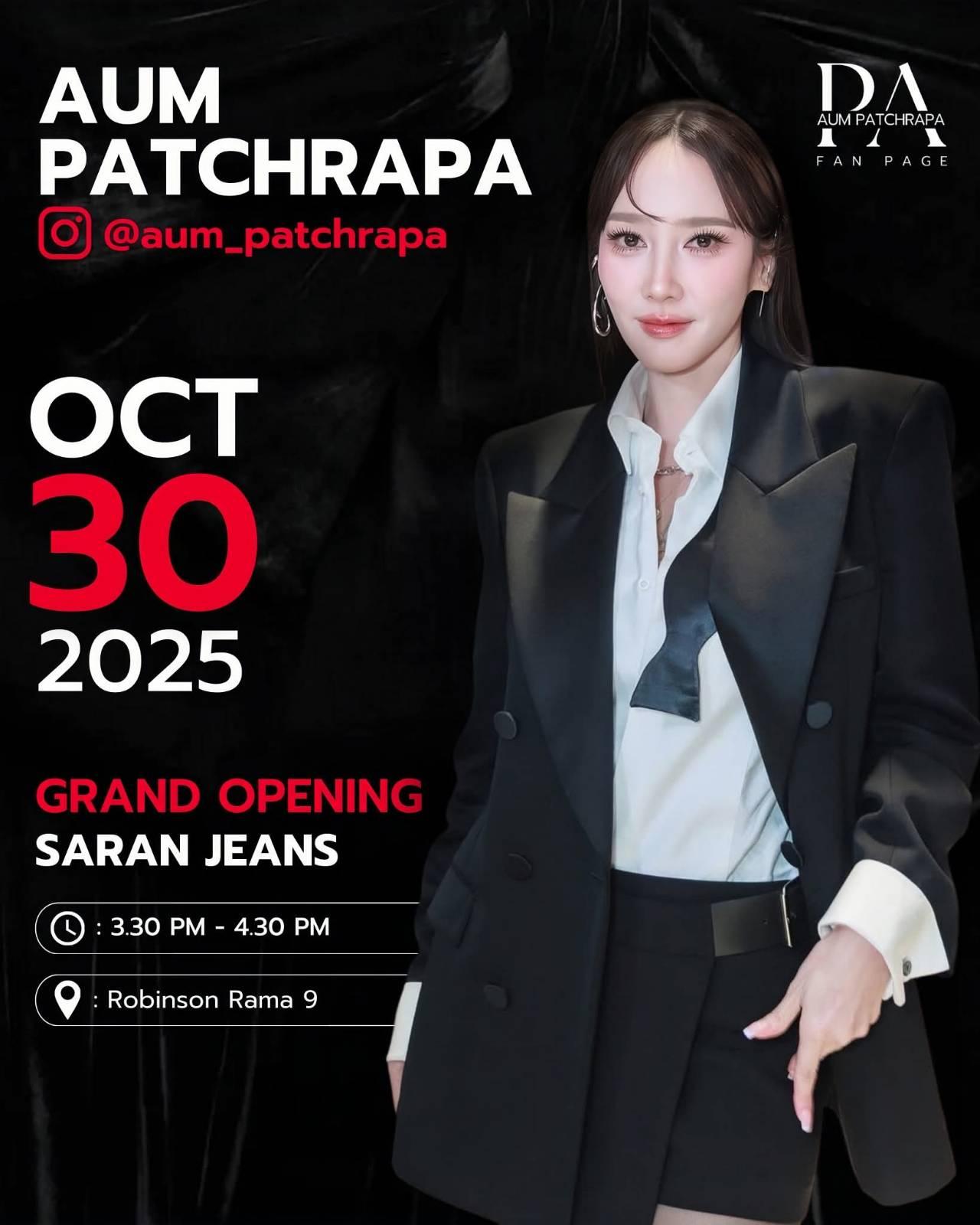 พบกับ คุณอั้ม พัชราภา ในงาน Grand Opening SARAN JEANS 📅 วันที่ 30 ตุลาคม 2568