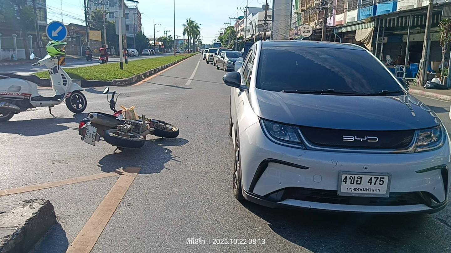 อุบัติเหตุ 2สาวขี่รถจยย. ข้ามฝั่ง ถูกรถเก๋งชนคว่ำ เจ็บสาหัสหมดสติ 1 เจ็บเล็กน้อย 1