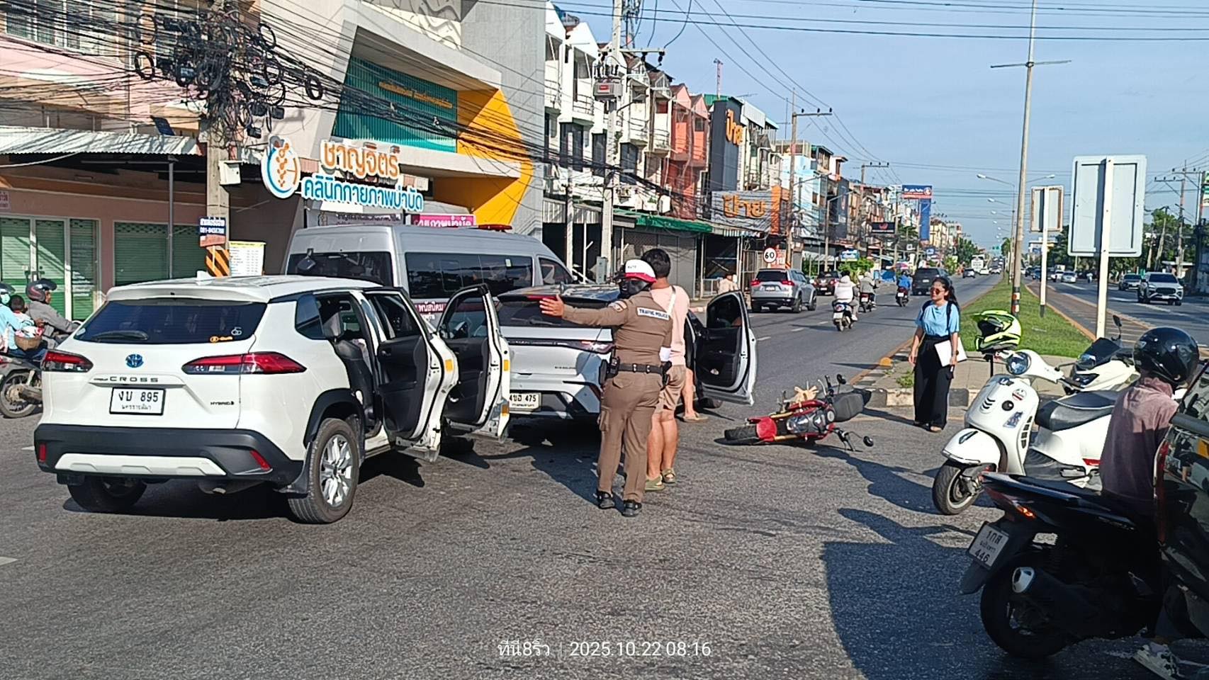 22/10/2568 เมื่อเวลา 08.00 น. ตร.สภ.เมืองฉะเชิงเทรา ตรวจสอบอุบัติเหตุบนถนนศุขประยูร บริเวณยูเทิร์นหน้าหมู่บ้านบางปะกงวิลล่า ต.หน้าเมือง พบรถชนกัน3 คันรวด มีผู้หญิงได้รับบาดเจ็บหมดสติ 1 ราย บาดเจ็บเล็กน้อย 2 ราย อาสาสมัครกู้ภัยฉะเชิงเทรา นำส่ง รพ.พุทธโสธร 2 ราย ส่วนอีก 1 ราย เป็นคนขับรถเก๋งโตโยต้า ไม่ประสงค์ไปโรงพยาบาล