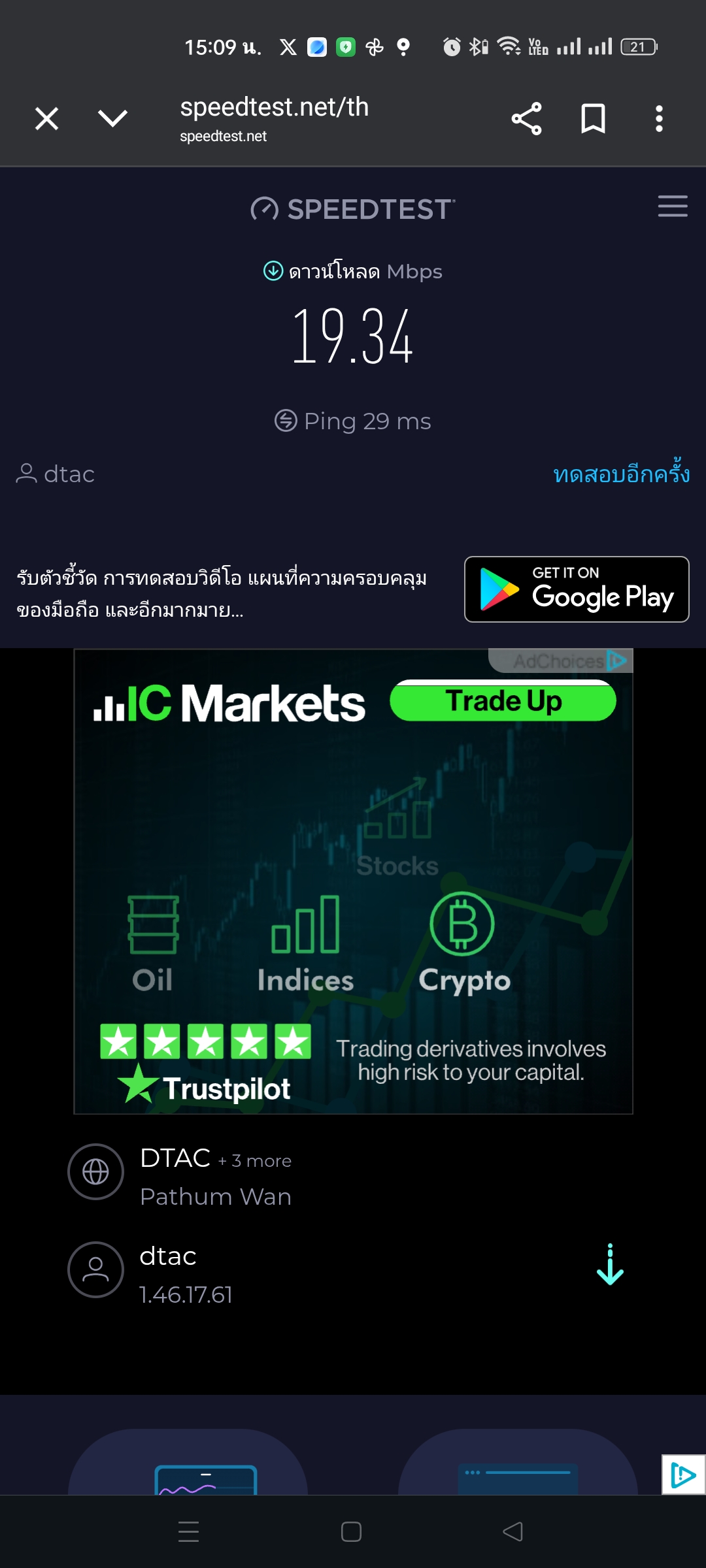 เน็ตมือถือ สมัคร 30 Mbps วิ่งอยู่ 18-20 Mbps ยังงี้ปกติไหมครับ