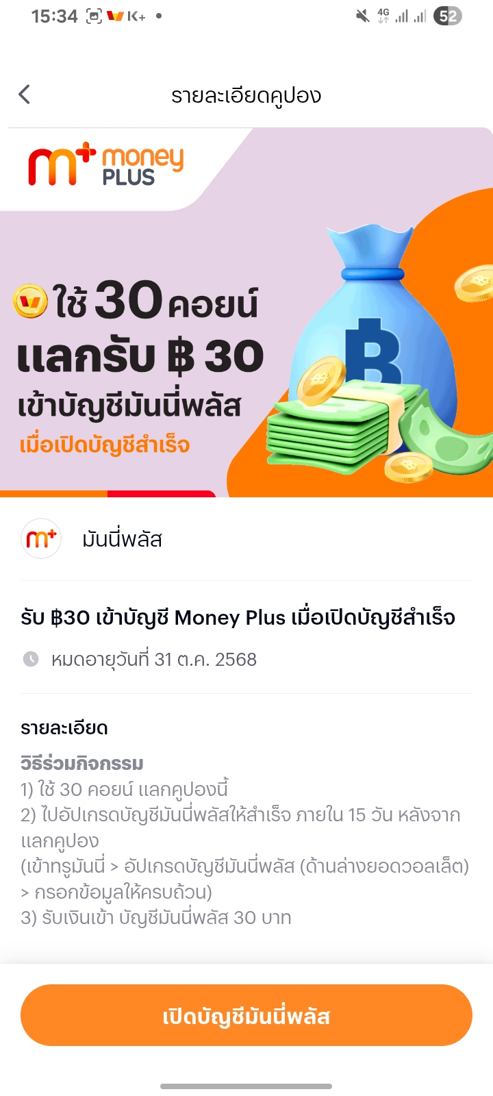 เเลกก่อน15วันเเล้วเปิดบัญชีมันนี่พลัสอันนี้เรียบร้อยทุกอย่างเเต่ทำไมถึงไม่ได้เงินไม่เข้าใจ