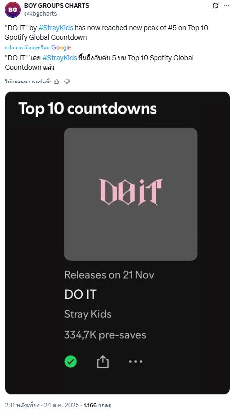 🔥 Stray Kids "DO IT" แรงอยู่ที่อันดับ 5 ใน Global Countdown Charts!! ของ Spotify
