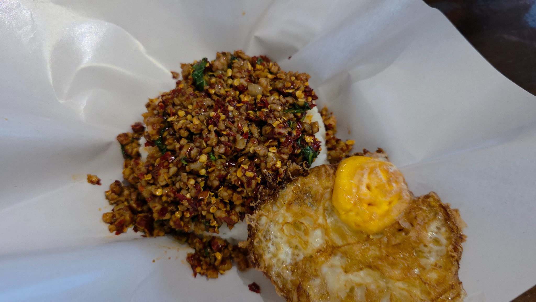 กะเพราหมูสับเผ็ดมาก ไข่ดาวสุกกรอบ: สำหรับสายแซ่บที่แท้ทรู! รสชาติเผ็ดร้อนสะใจถึงเครื่องกะเพรา
