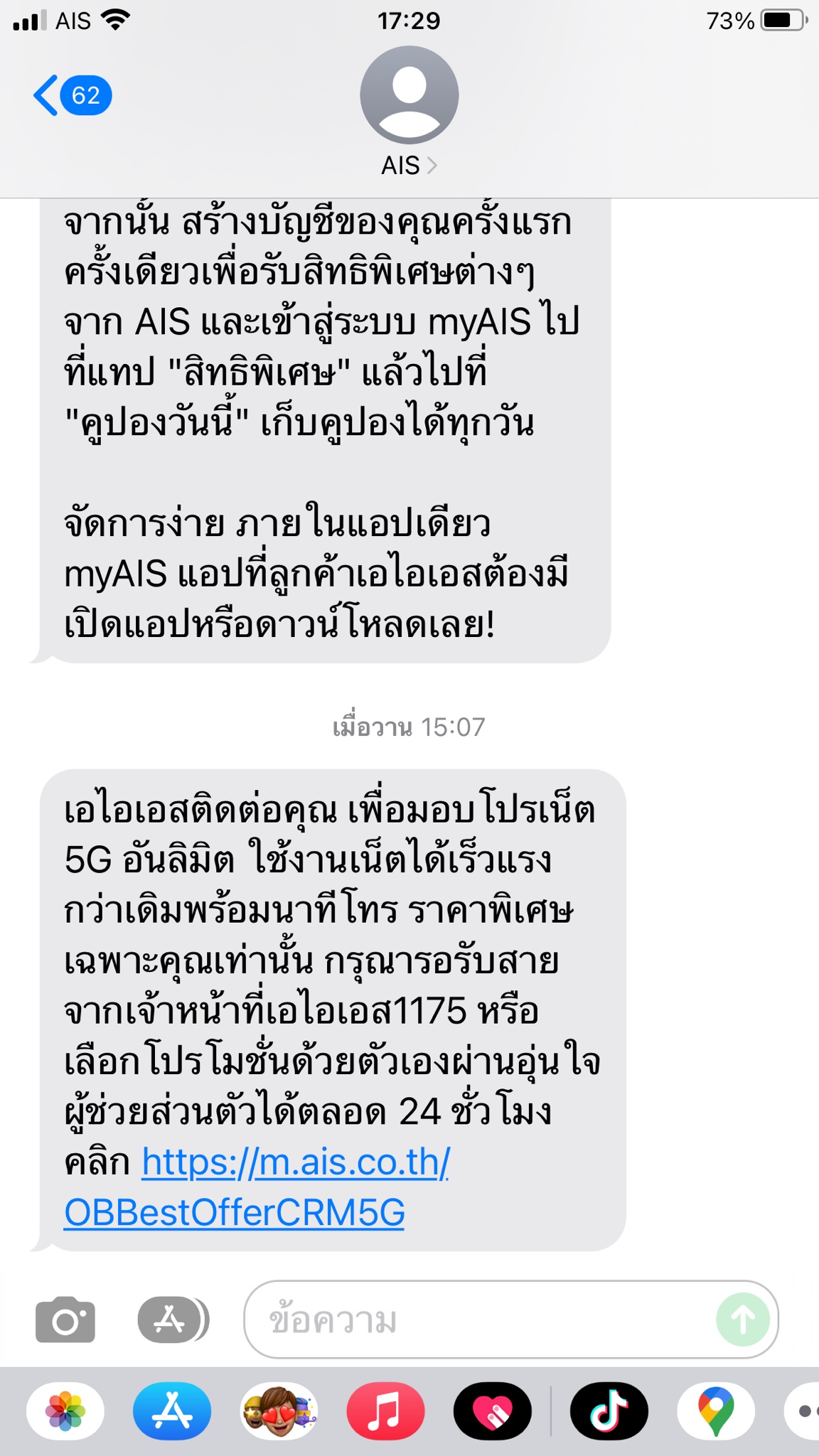 ได้รับข้อความจาก AIS อยากทราบรายละเอียดเพิ่มเติมเรื่องค่าใช้จ่ายรายเดือนครับ